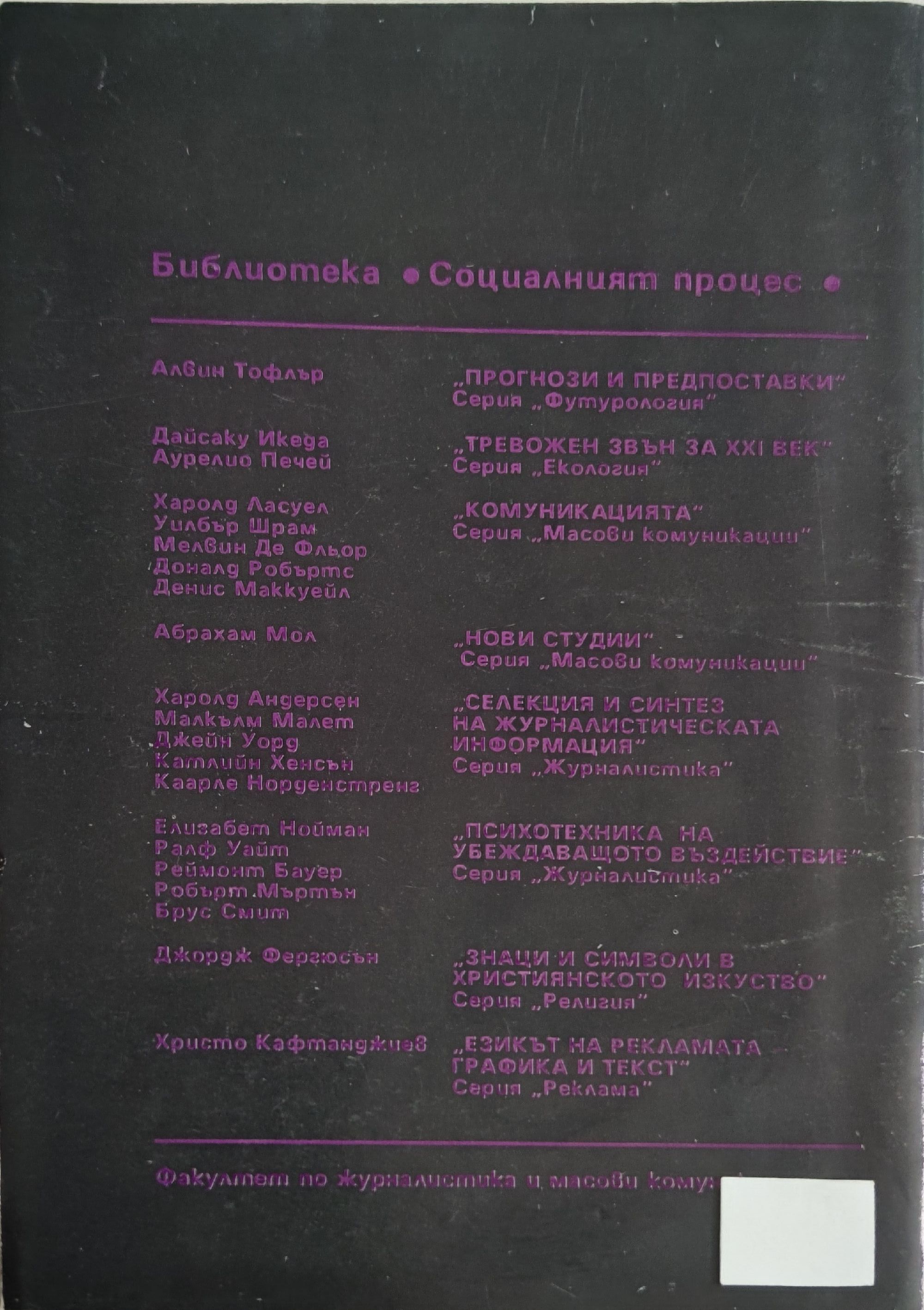 - издателство: Факултет по журналистика и масови комуникации