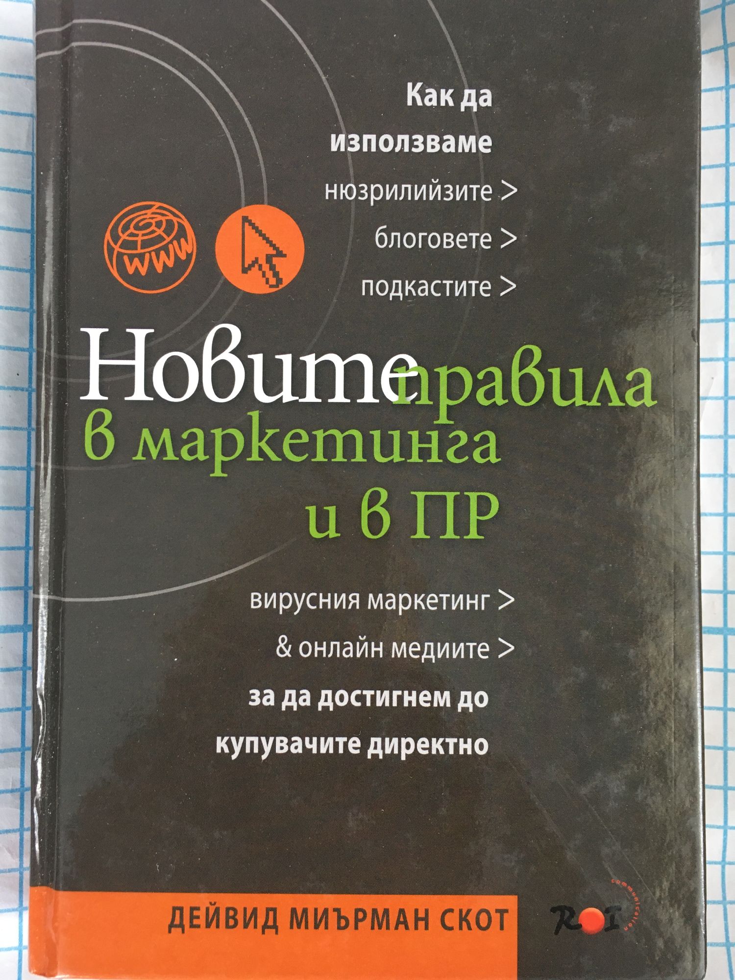 Мрежата промени правилата за писане и изпращане на нюзрилийзи. Проблемът е, че повечето ПР практикици все още не знаят това. През последните 10 години, откакто мрежата позволи на хората да четат директно нюзрилийзи, правилата за взаимоотношения с публиките се промениха. Време е да продължим напред и да обсъдим добрите перспективи, които предоставя ПР в Уеб 2.0. * Искате ли да достигнете директно до купувачите? * Искате ли трафик към вашия сайт? * Искате ли да се появявате сред първите резултати в търсачките? * Искате ли да привлечете купувачи, които търсят, онова, което вие предлагате? * Искате ли да привлечете хората в процеса на продажби? * Искате ли да се конкурирате по-ефективно? Ако отговорът на зададените въпроси е "Да", то "Новите правила в маркетинга и в ПР", е книгата която ще ви разкрие как да постигнете тези цели. За да ги постигнете, трябва да сте подготвени да промените начина, по който мислите за нюзрилийзите. Марк Леви, съавтор на "Как да убеждаваме хората, които не искат да бъдат убеждавани" и основател на компанията за маркетингови стратегии "Леви иновейшън" казва за книгата на Дейвид Миърман Скот: "Новите правила в маркетинга и в ПР" напътства читателите как да създадат кампания, демонстрираща лидерство в мисленето, чрез използването на влиятелните и дълготрайни инструменти на социалните медии. Това е безценен пътеводител за всички, които искат да изградят репутацията на своите идеи и организация." Дейвид Миърман Скот е автор, консултант, и лектор на семинари. Специализирал се е в използването на онлайн съдържание за маркетинг и продажба на продукти и услуги за клиенти от цял свят. Редактор е в списание "Е-контент" и автор в списание "Продъкт маркетинг". Негови публикации са излизали в такива разнообразни издания като CMOMagazine.com, "Бизнес уийк", "Компететив интелиджънс", Норт американ ривю, MarketingProfs.com, RainToday.com, "Маркетинг таймс" и много други. Участвал като лектор в конференции и събития в повече от 20 държави на 4 континента. Водещ е на семинара "Ефективни маркетингови програми", организиран от "Прагматик маркетинг", двудневен курс, обучаващ курсистите в повтарящ се процес, който компаниите, могат да използват, за да създадат, управляват и измерват маркетингови програми с висока възвращаемост (ROI).