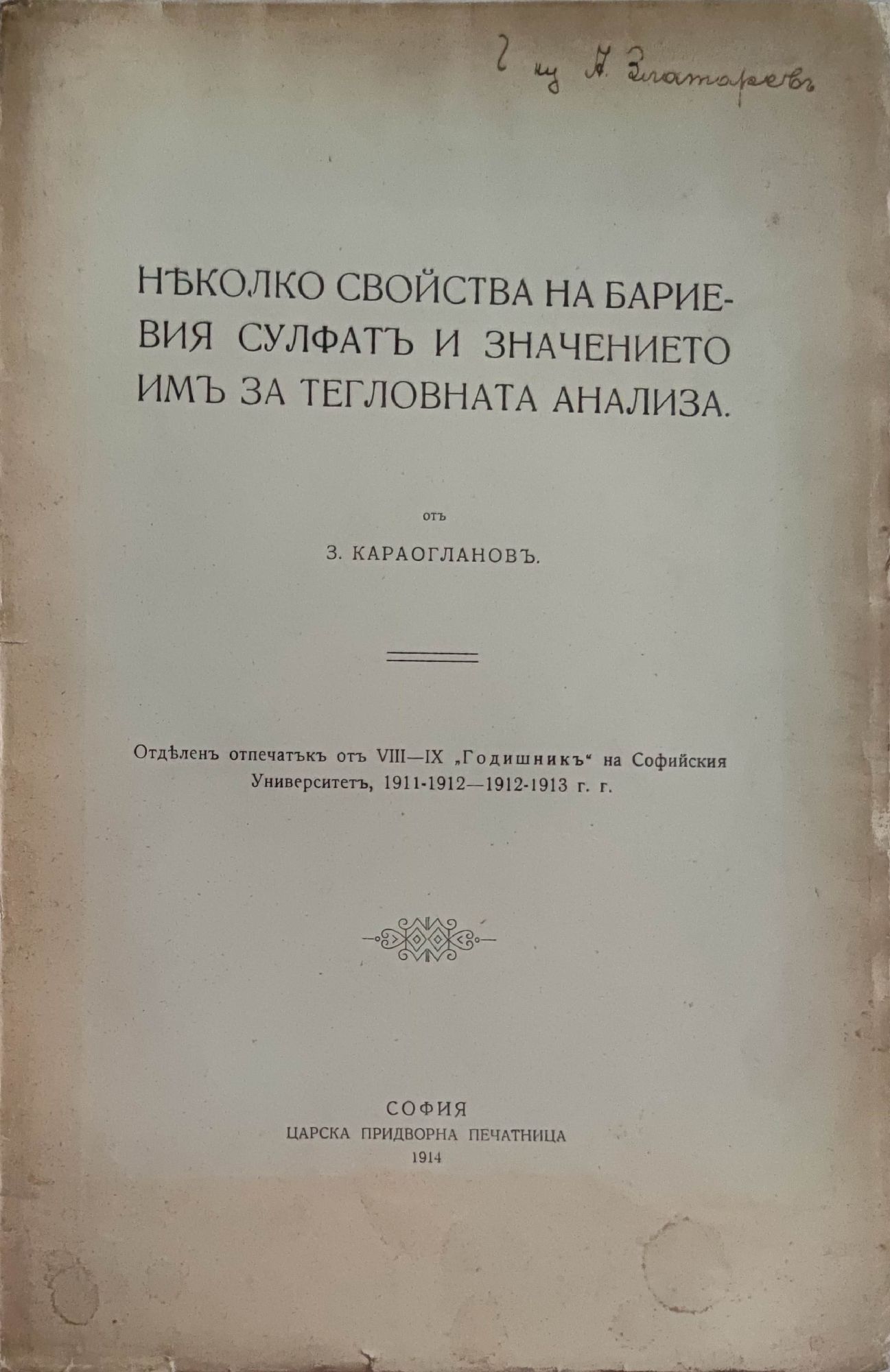Няколко свойства на бариевия сулфатъ и значението имъ за тегловната анализа