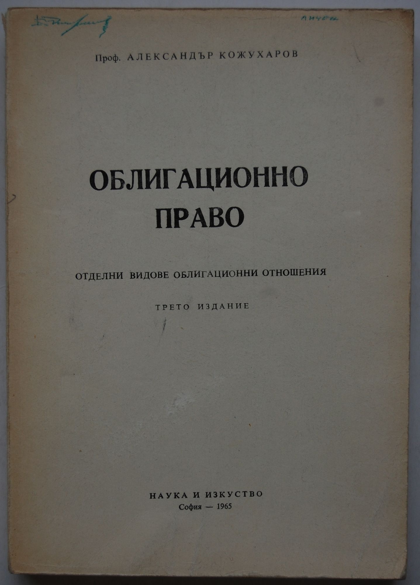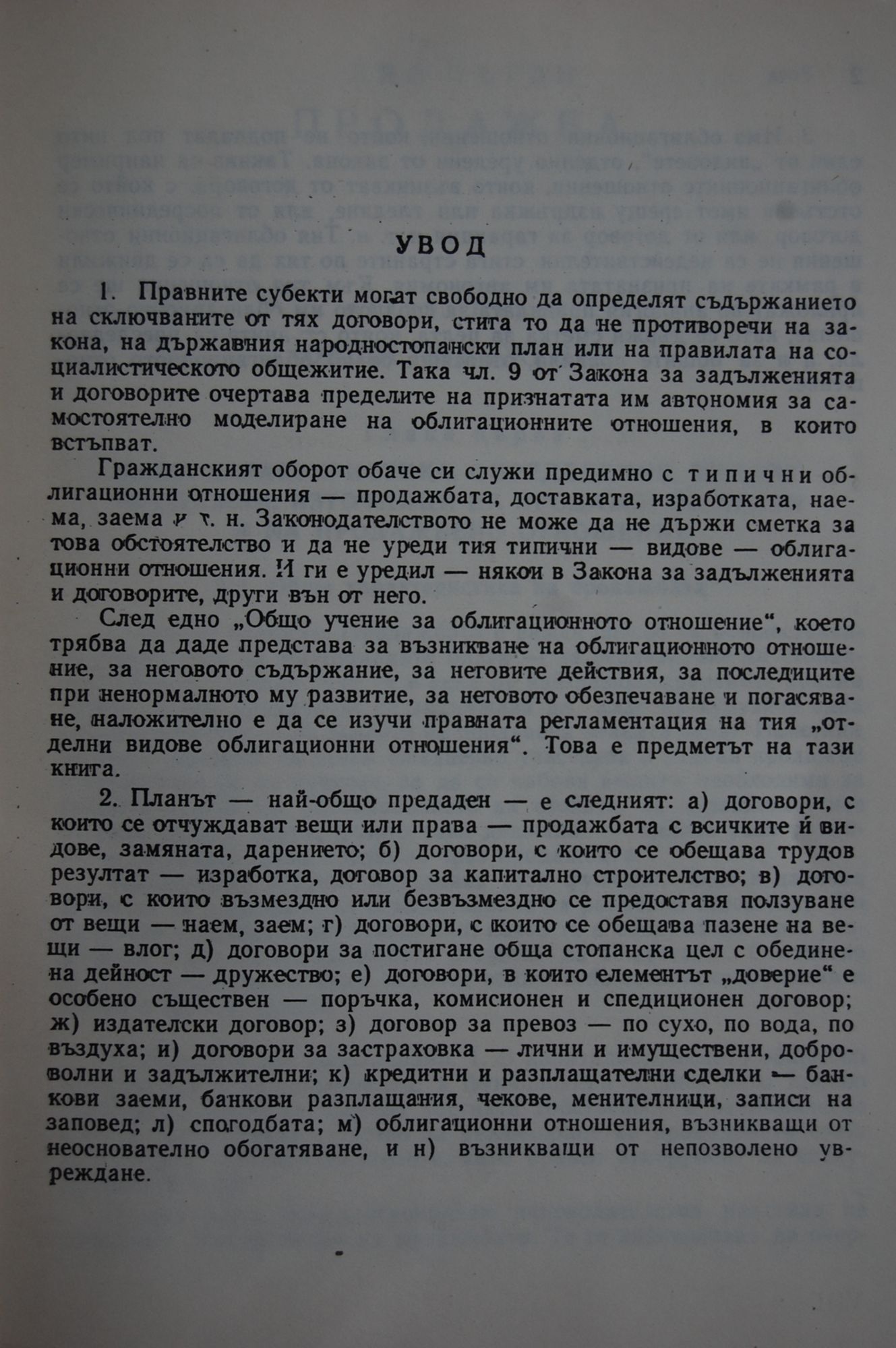Книгата е учебник по специалната част на облигационното право. Разглеждат се договорите за продажба, за доставка, за външнотърговска продажба, за замяна, за дарение, за изработка, за изработка в капиталното строителство, за наем, за заем, за влог и за дружество. Книгата е предназначена за студенти и практикуващи юристи. В учебника е взет предвид нормативният материал, обнародван до 31. XII. 1964 г.