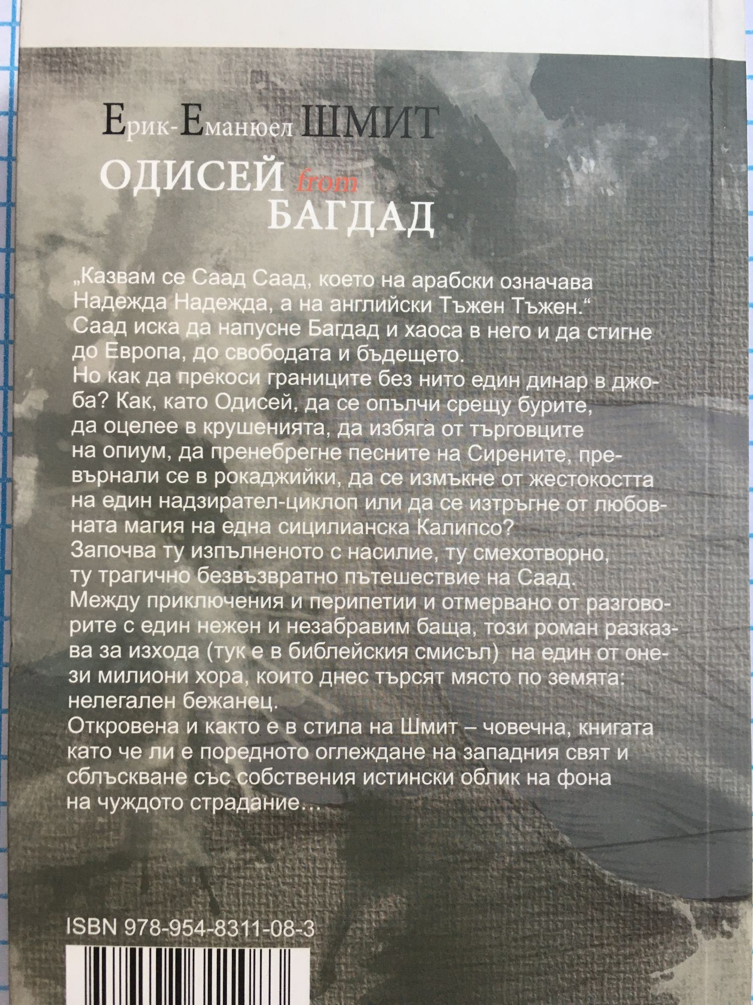 "Казвам се Саад Саад, което на арабски означава Надежда Надежда, а на английски Тъжен Тъжен." Саад иска да напусне Багдад и хаоса в него и да стигне до Европа, до свободата и бъдещето. Но как да прекоси границите без нито един динар в джоба? Как, като Одисей, да се опълчи срещу бурите, да оцелее в крушенията, да избяга от тъговците на опиум, да пренебрегне песните на Сирените, превърнали се в рокаджиййки, да се измъкне от жестокостта на един надзирател-циклоп или да изтръгне от любовната магия на една сицилианска Калипсо?