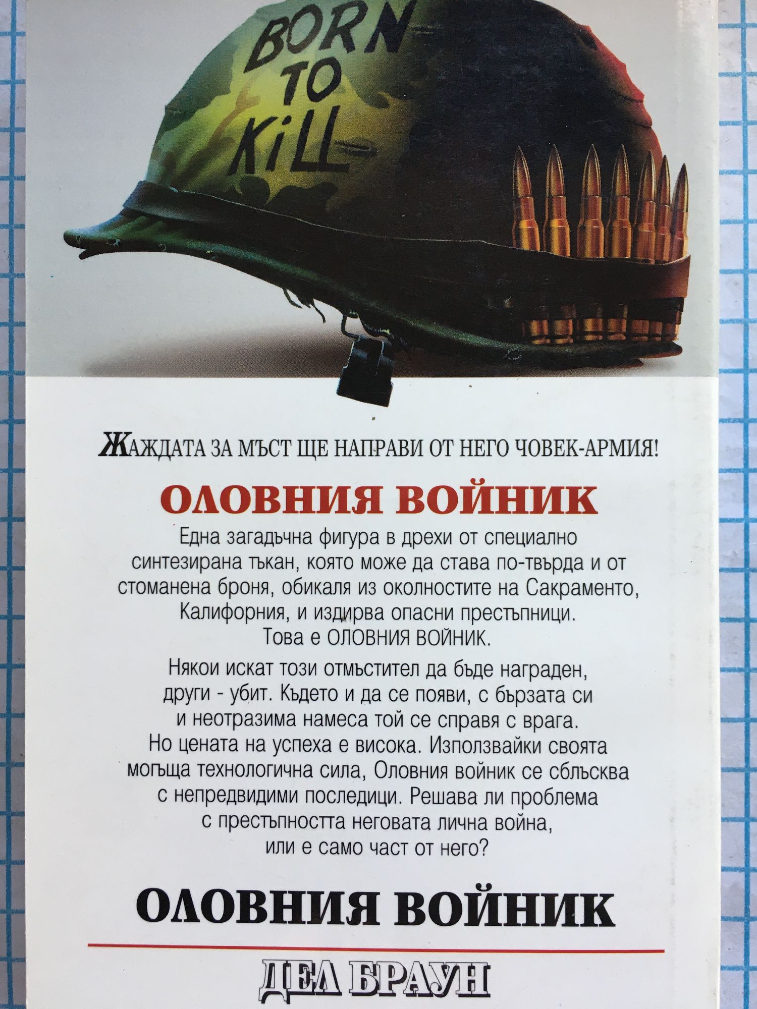 Една загадъчна фигура в дрехи от специално синтезирана тъкан, която може да става по-твърда и от стоманена броня, обикаля из околностите на Сакраменто, Калифорния, и издирва опасни престъпници. Това е ОЛОВНИЯ ВОЙНИК. Някои искат този отмъстител да бъде награден, други - убит. Където и да се появи, с бързата си и неотразима намеса той се справя с врага. Но цената на успеха е висока. Използвайки своята могъща технологична сила, Оловния войник се сблъсква с непредвидими последици. Решава ли проблема с престъпността неговата лична война, или е само част от него?