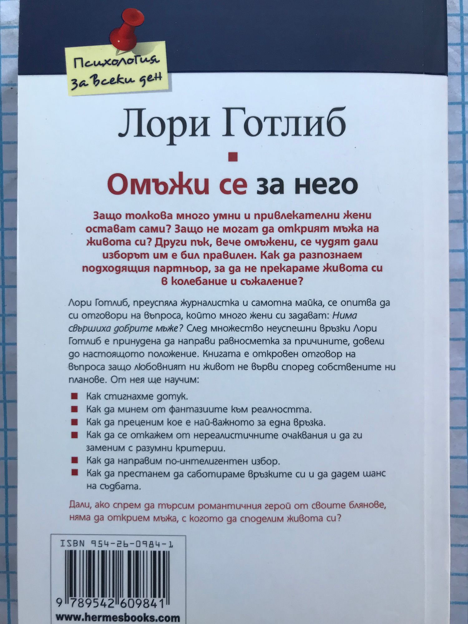 Лори Готлиб, преуспяла журналистка и самотна майка, се опитва да си отговори на въпроса, който много жени си задават: Нима свършиха добрите мъже? След множество неуспешни връзки Лори Готлиб е принудена да направи равносметка за причините, довели до настоящото положение. Книгата е откровен отговор на въпроса защо любовният ни живот не върви според собствените ни планове. От нея ще научим: Как стигнахме дотук. Как да минем от фантазиите към реалността. Как да преценим кое е най-важното за една връзка. Как да се откажем от нереалистичните очаквания и да ги заменим с разумни критерии. Как да направим по-интелигентен избор. Как да престанем да саботираме връзките си и да дадем шанс на съдбата. Дали, ако спрем да търсим романтичния герой от своите блянове, няма да открием мъжа, с когото да споделим живота си?
