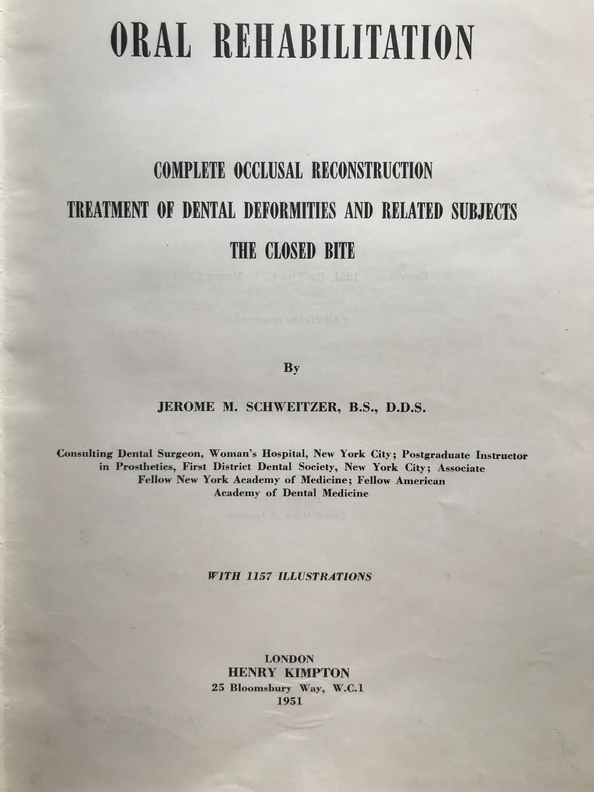Complete Occlusal Reconstruction Treatment of Dental Deformites and Related Subjects the Closed Bite