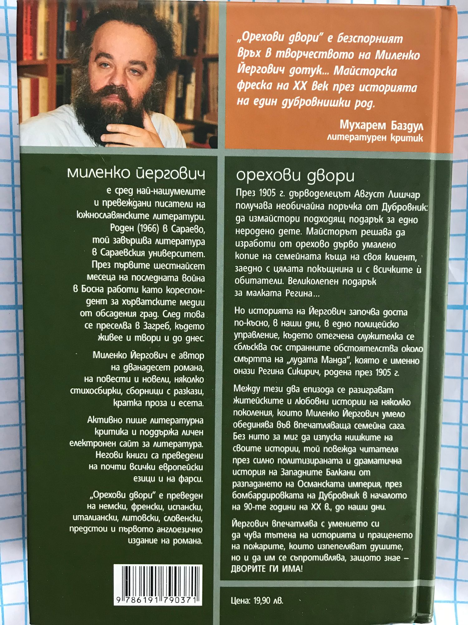 През 1905 г. дърводелецът Август Лишчар получава необичайна поръчка от Дубровник: да измайстори подходящ подарък за едно неродено дете. Майсторът решава да изработи от орехово дърво умалено копие на семейната къща на своя клиент, заедно с цялата покъщнина и с всичките обитатели. Великолепен подарък за малката Регина… Но историята на Йергович започва доста по-късно, в наши дни, в едно полицейско управление, където отегчена служителка се сблъсква със странните обстоятелства около смъртта на „лудата Манда“, която е именно онази Регина Сикирич, родена през 1905 г. Между тези два епизода се разиграват житейските и любовни истории на няколко поколения, които Миленко Йергович умело обединява във впечатляваща семейна сага. Без нито за миг да изпуска нишките на своите истории, той повежда читателя през силно политизираната и драматична история на Западните Балкани от разпадането на Османската империя през бомбардировката на Дубровник в началото на 90-те години до наши дни Йергович впечатлява с умението си да чува тътена на историята и пращенето на пожарите, които изпепеляват душите, но и да им се съпротивлява, защото знае – Дворите ги има! „Орехови двори" е безспорният връх в творчеството на Миленко Йергович дотук... Майсторска фреска на ХХ век през историята на един дубровнишки род.“ Мухарем Баздул, литературен критик
