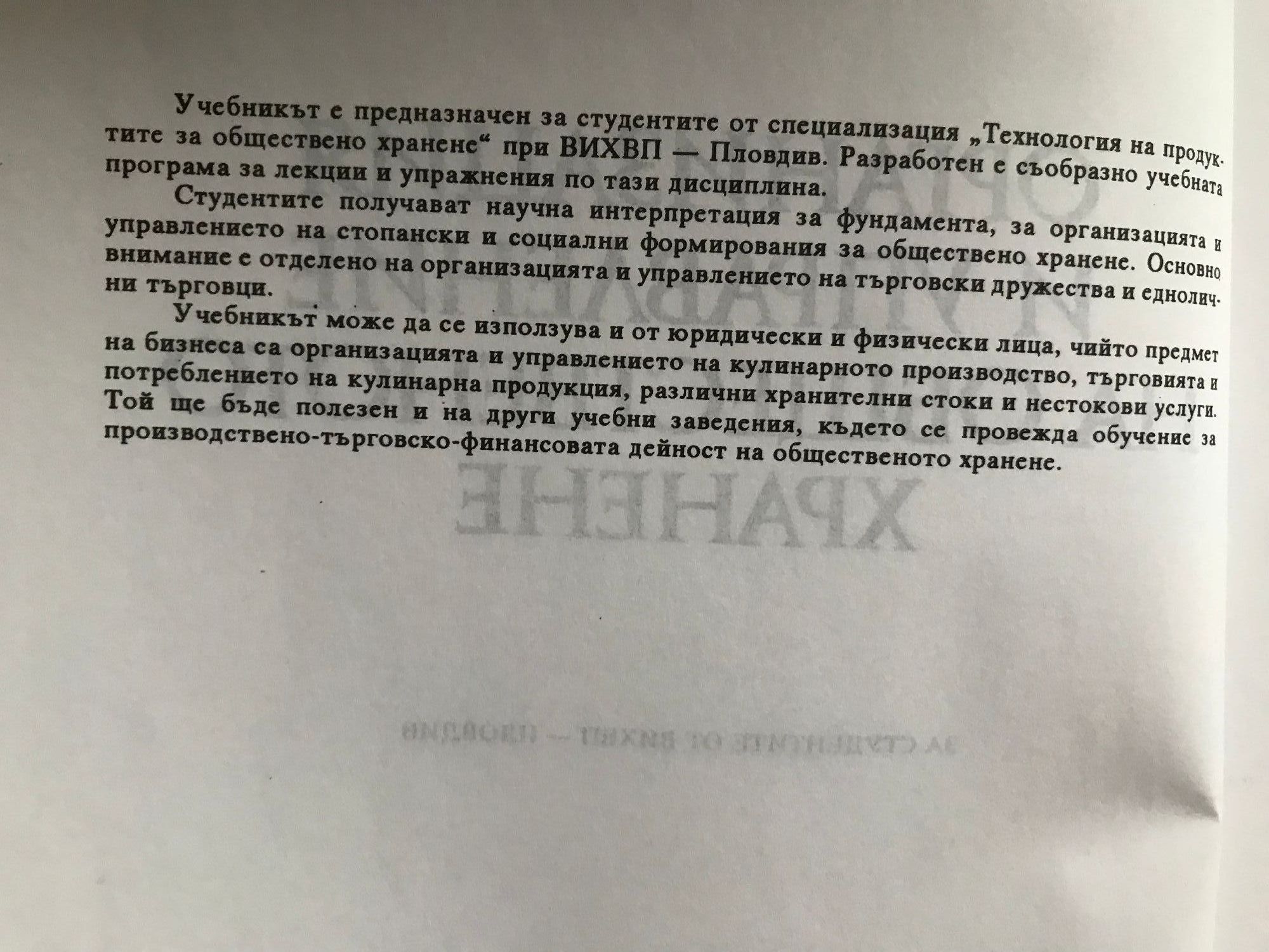 Организация и управление на общественото хранене