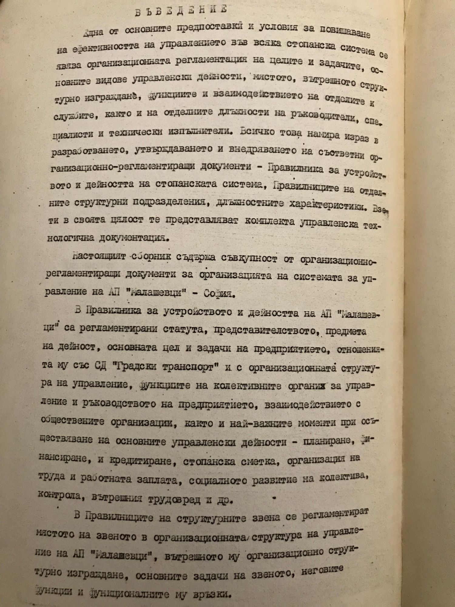 Организация на системата за управление в АП "Малашевци" - София