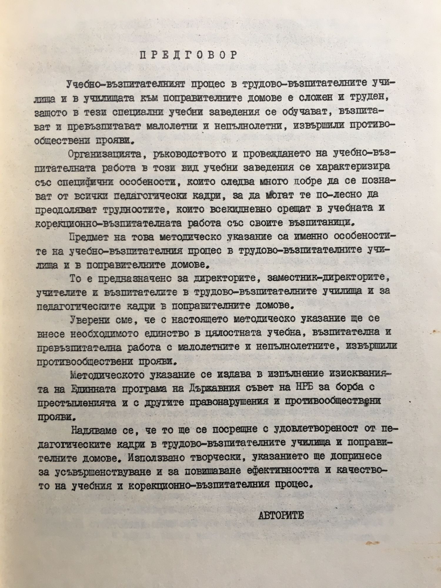 Организация на учебно-възпитателния процес в трудово-възпитателните училища и поправителните домове