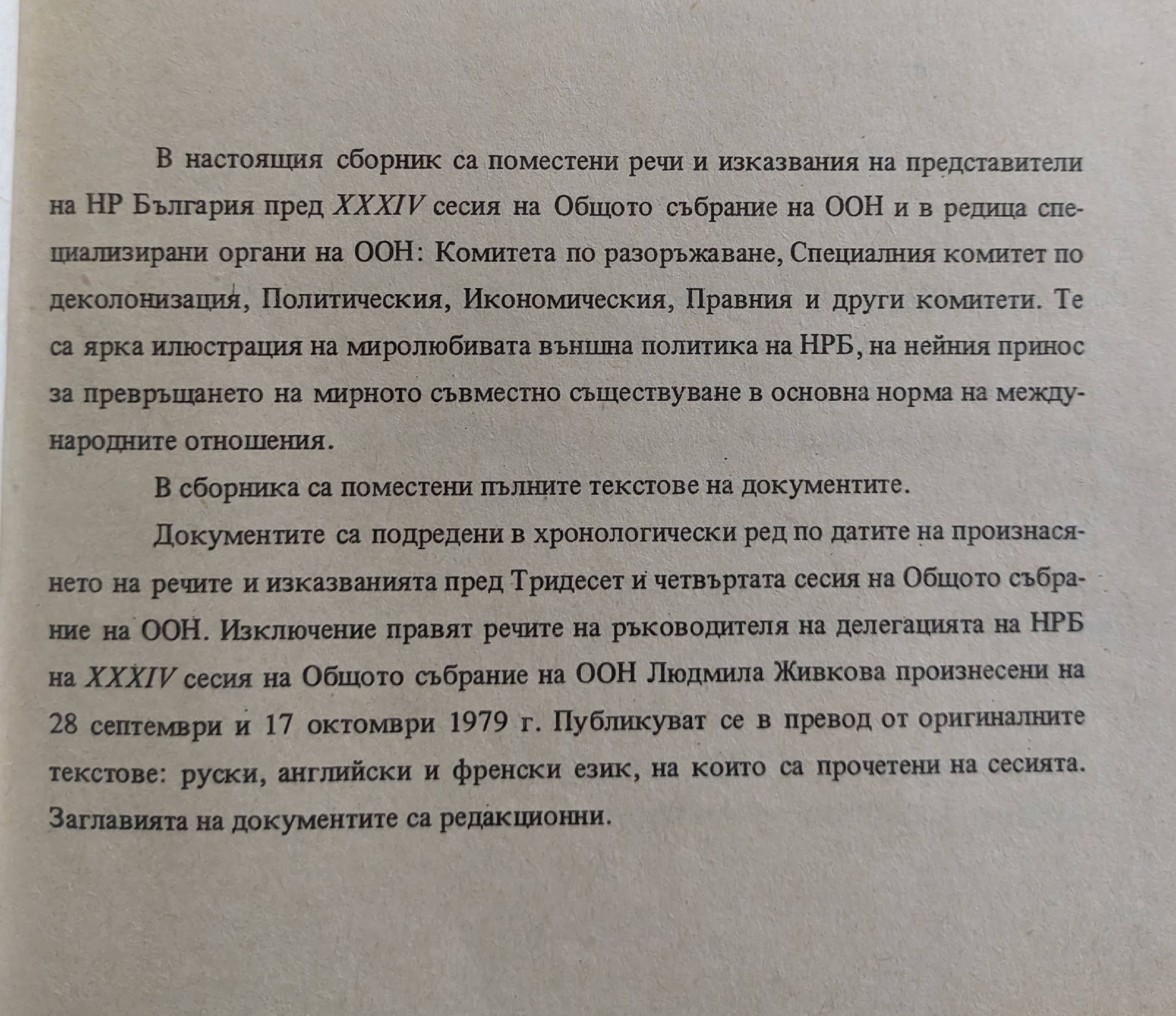 Речи и изказвания на български представители на XXXIV сесия на общото събрание на ООН
