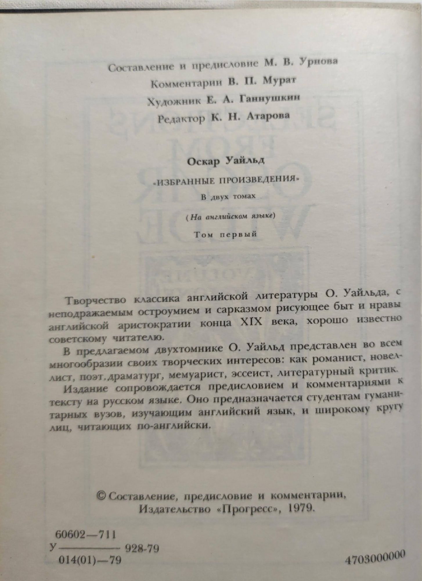 Oscar Wilde - Selections / Оскар Уайльд - Избранные произведения.