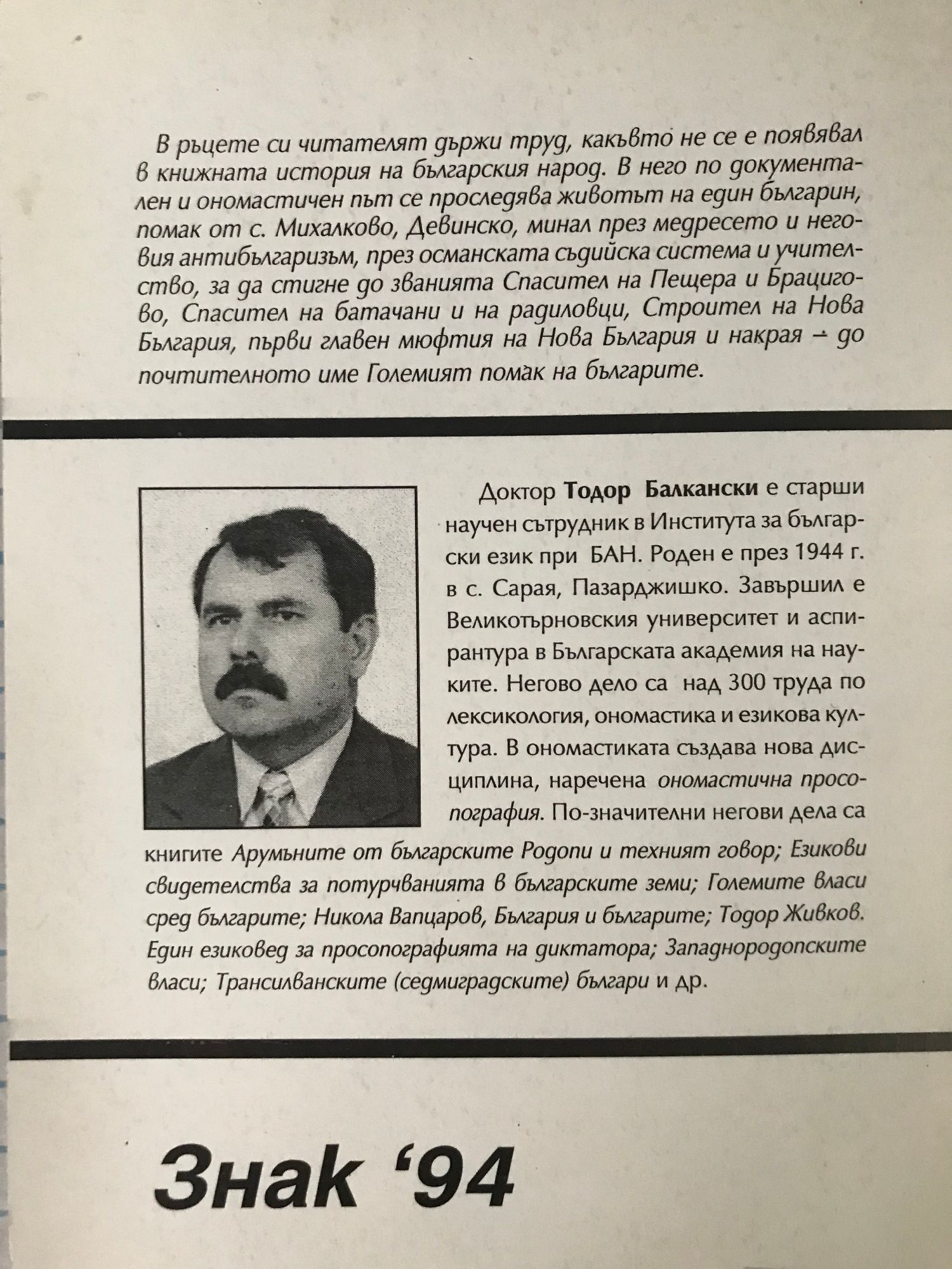 от д-р. Тодор Балкански