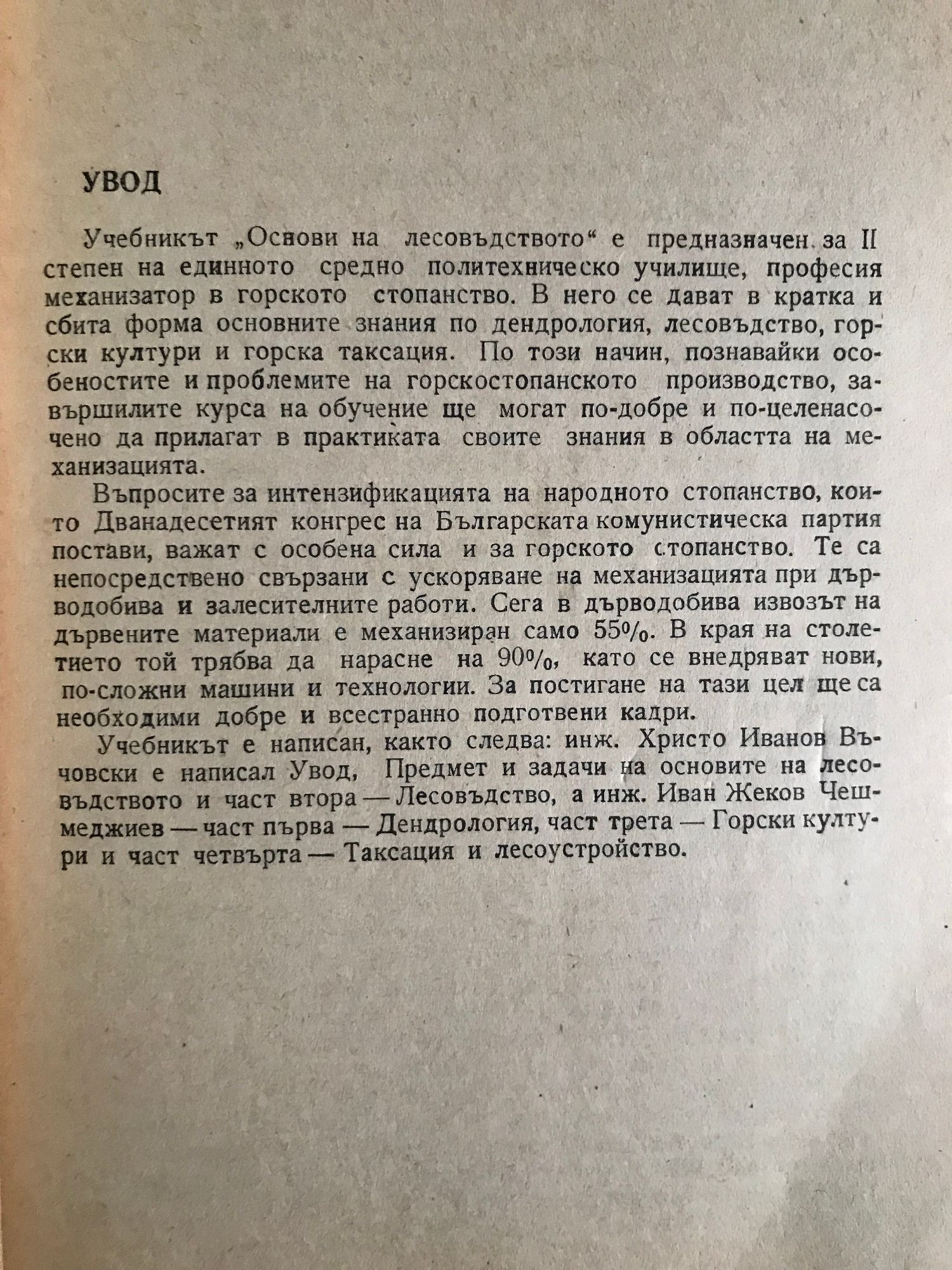 Учебник за II степен на единното средно политехническо училище професия механизатор в горското стопанство