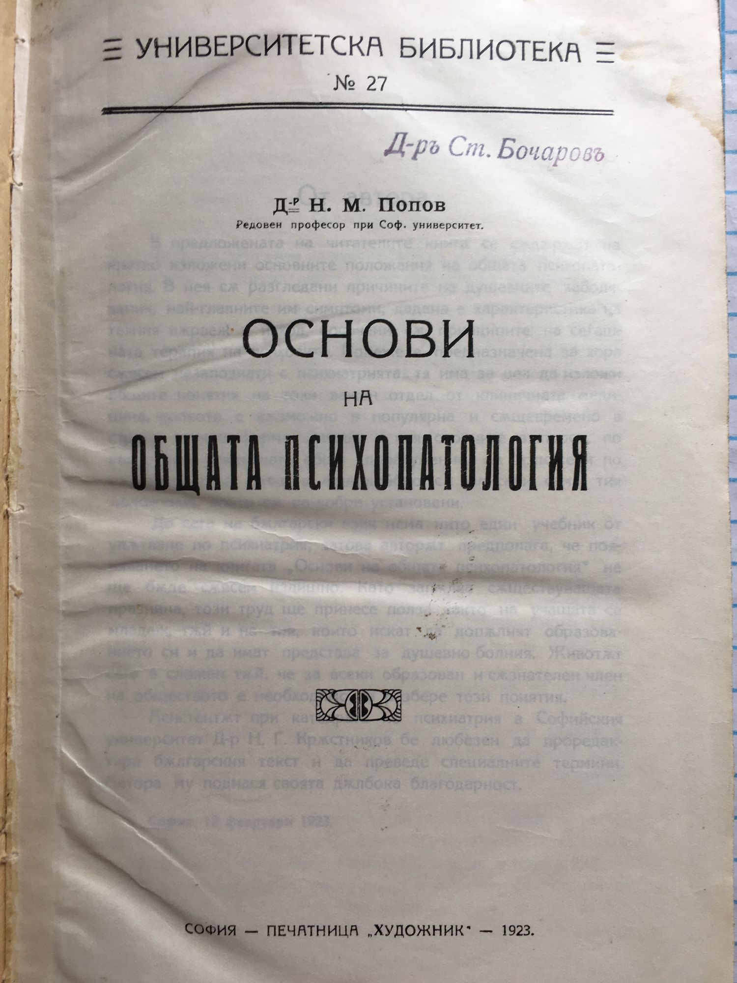 от д-р. Н. М. Попов