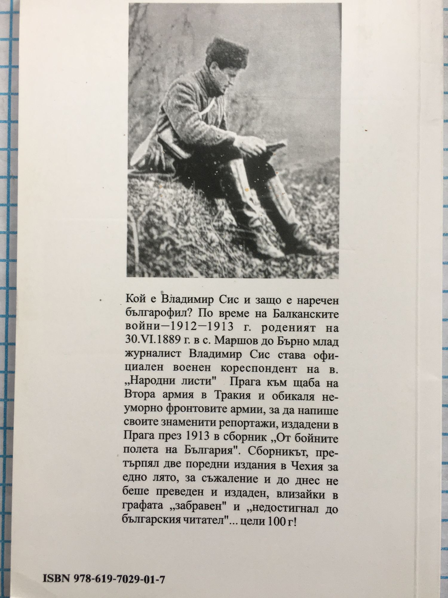 Кой е Владимир Сис и защо е наречен българофил? По време на Балканските войни 1912-1913 г. роденият на 30.VI.1889 г. в с. Маршов до Бърно млад журналист Владимир Сис става официален военен кореспондент на в. "Народни листи" - Прага към щаба на Втора армия в Тракия и обикаля неуморно фронтовите армии, за да напише своите знаменити репортажи, издадени в Прага през 1913 г. в сборник "От бойните полета на България". Сборникът, претърпял две поредни издания в Чехия за едно лято, за съжаление и до днес не беше преведен и издаден, влизайки в графата "забравен" и "недостигнал до българския читател"... цели 100 години!