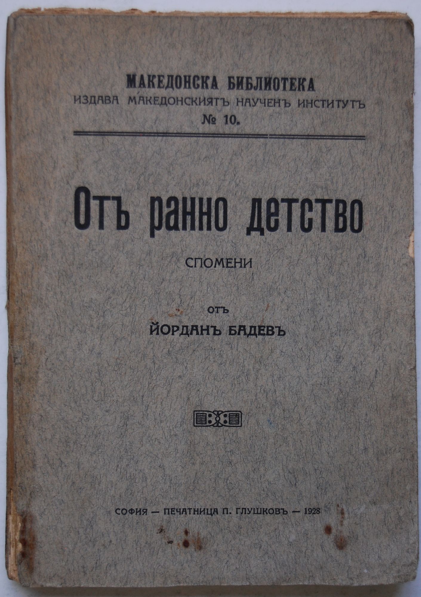 30,00 лв. / 15,34 €Добро състояние на книжното тяло. В твърда зелена подвързия (леки следи от влага или лепило в краищата на форзаците); запазени меки корици, но предната е изцапана (вж. снимки). Пожълтели страници