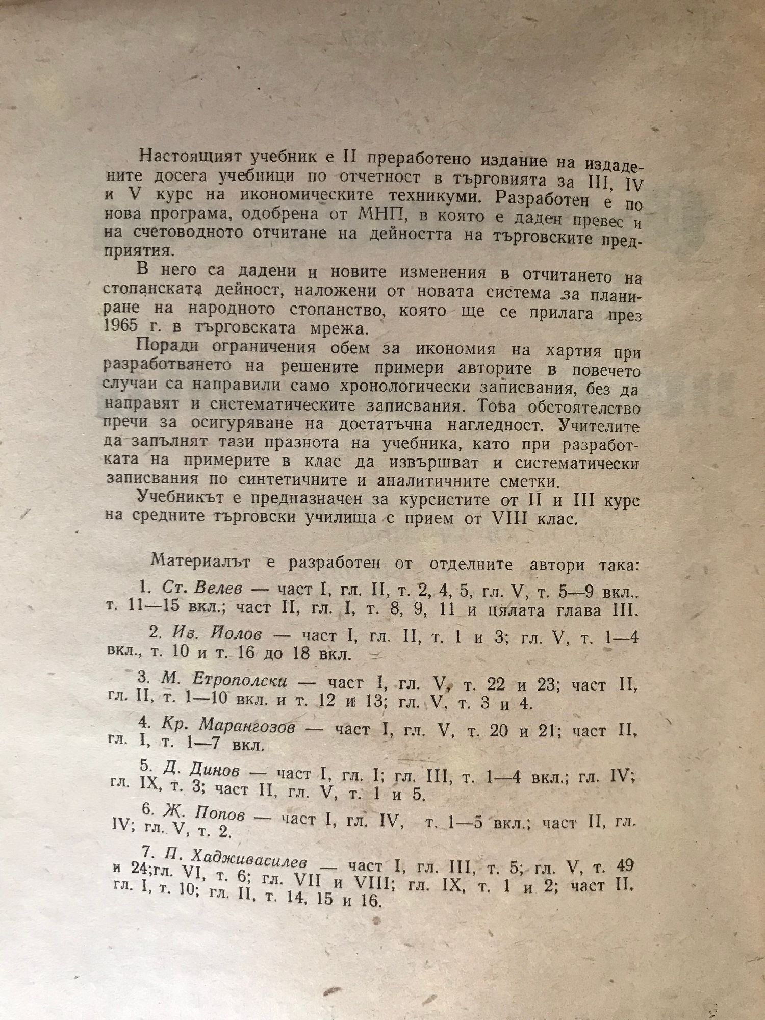 от Ст. Велев, М. Етрополски, Д. Динов, Ив. Йолов, Кр. Марангозов, Ж. Попов, П. Хадживасилев