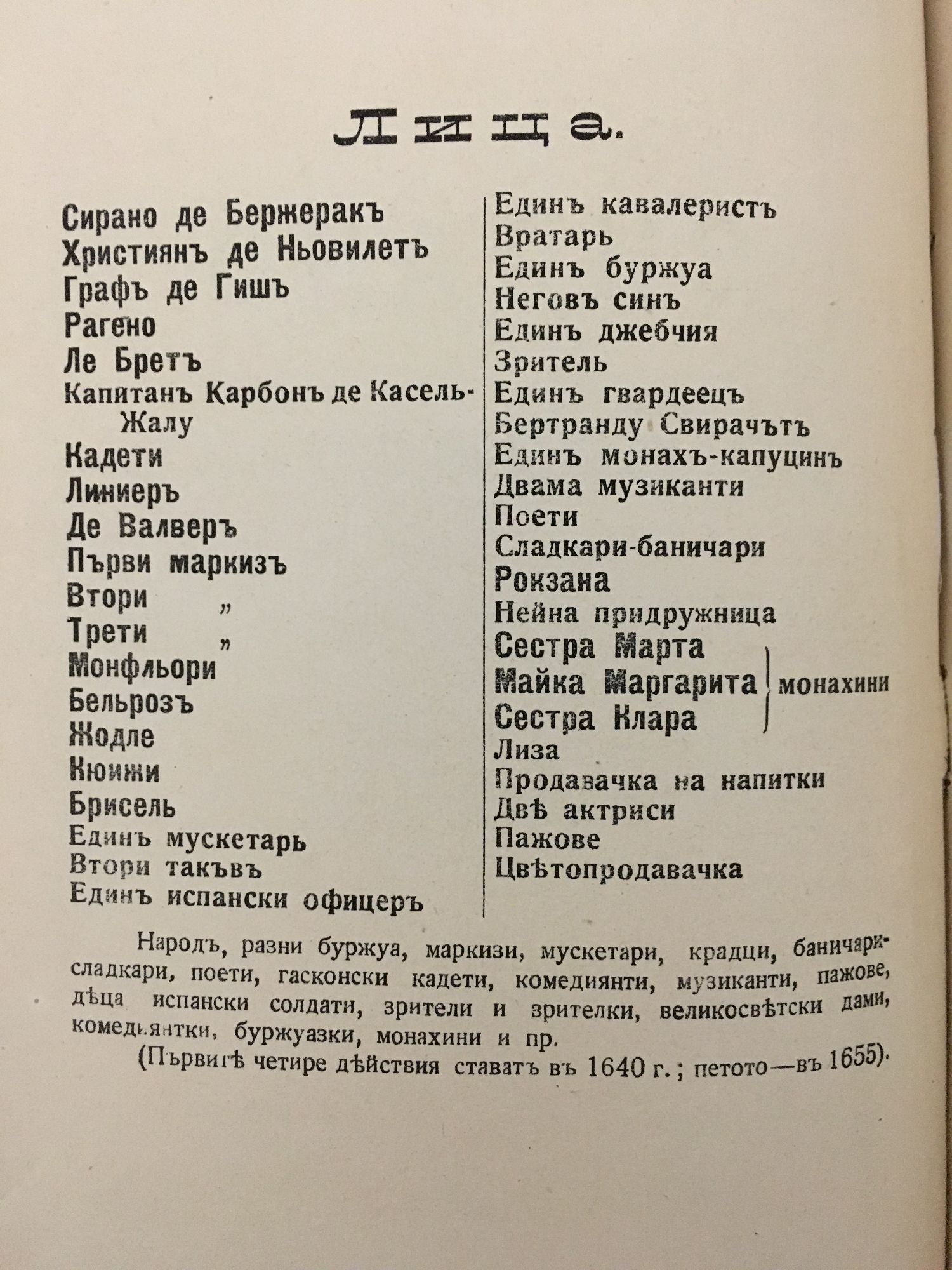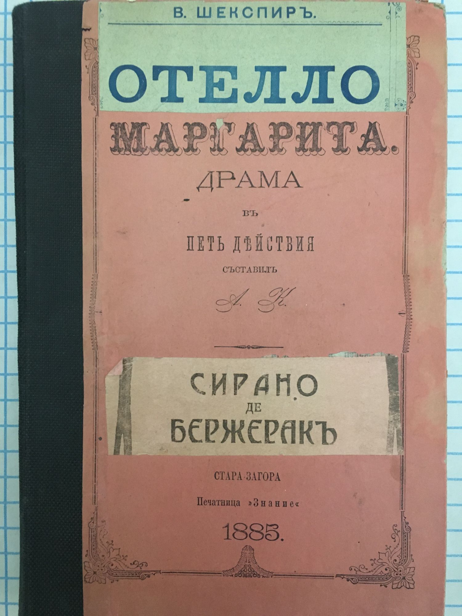Отелло: Венецианский Мавръ - трагедия въ петь действия. Маргарита: Драма въ петь действия. Сирано де Бержеракъ: Хероическа комедия въ петь действия.