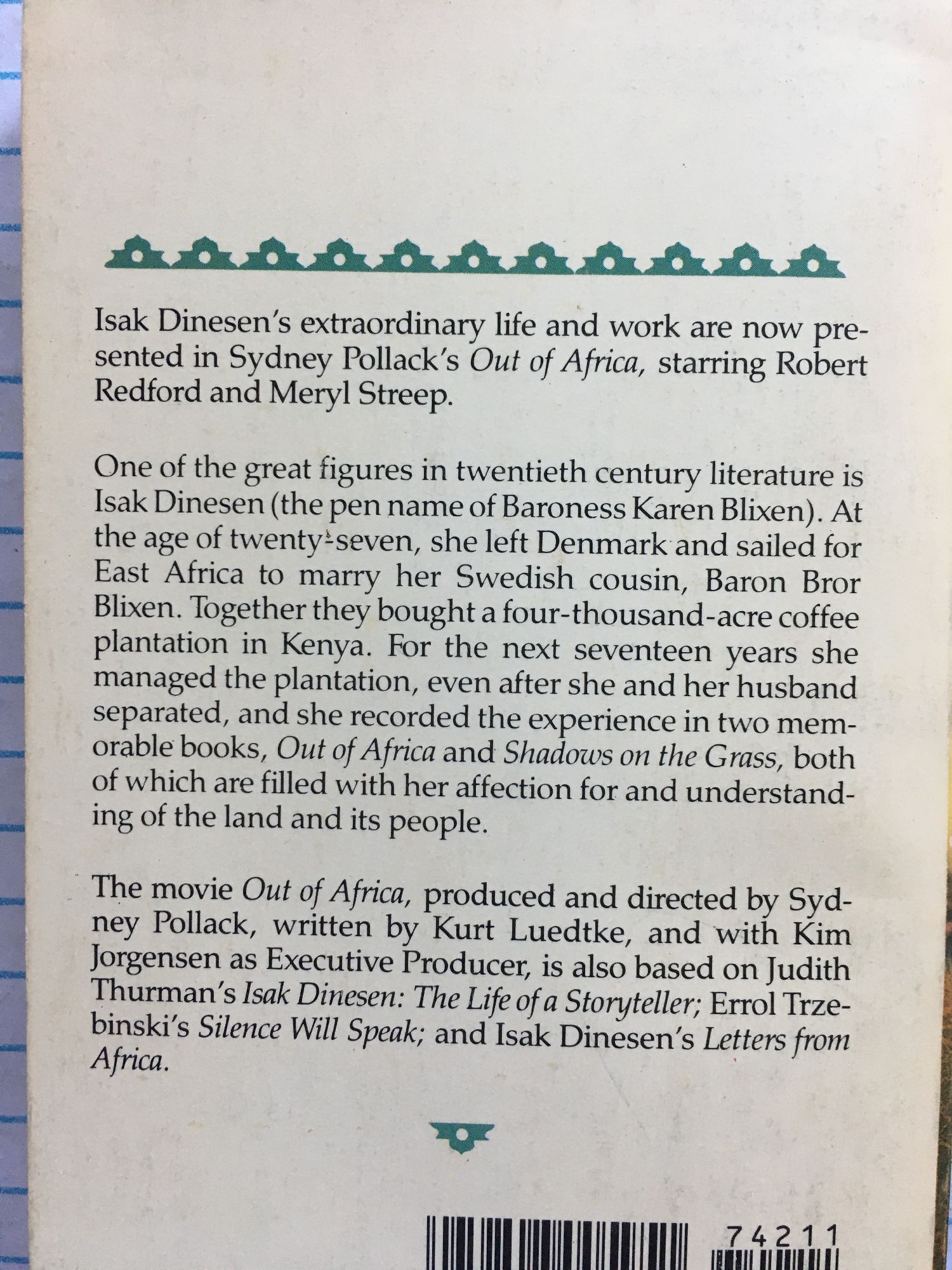 от Isak Dinesen, Исак Динесен