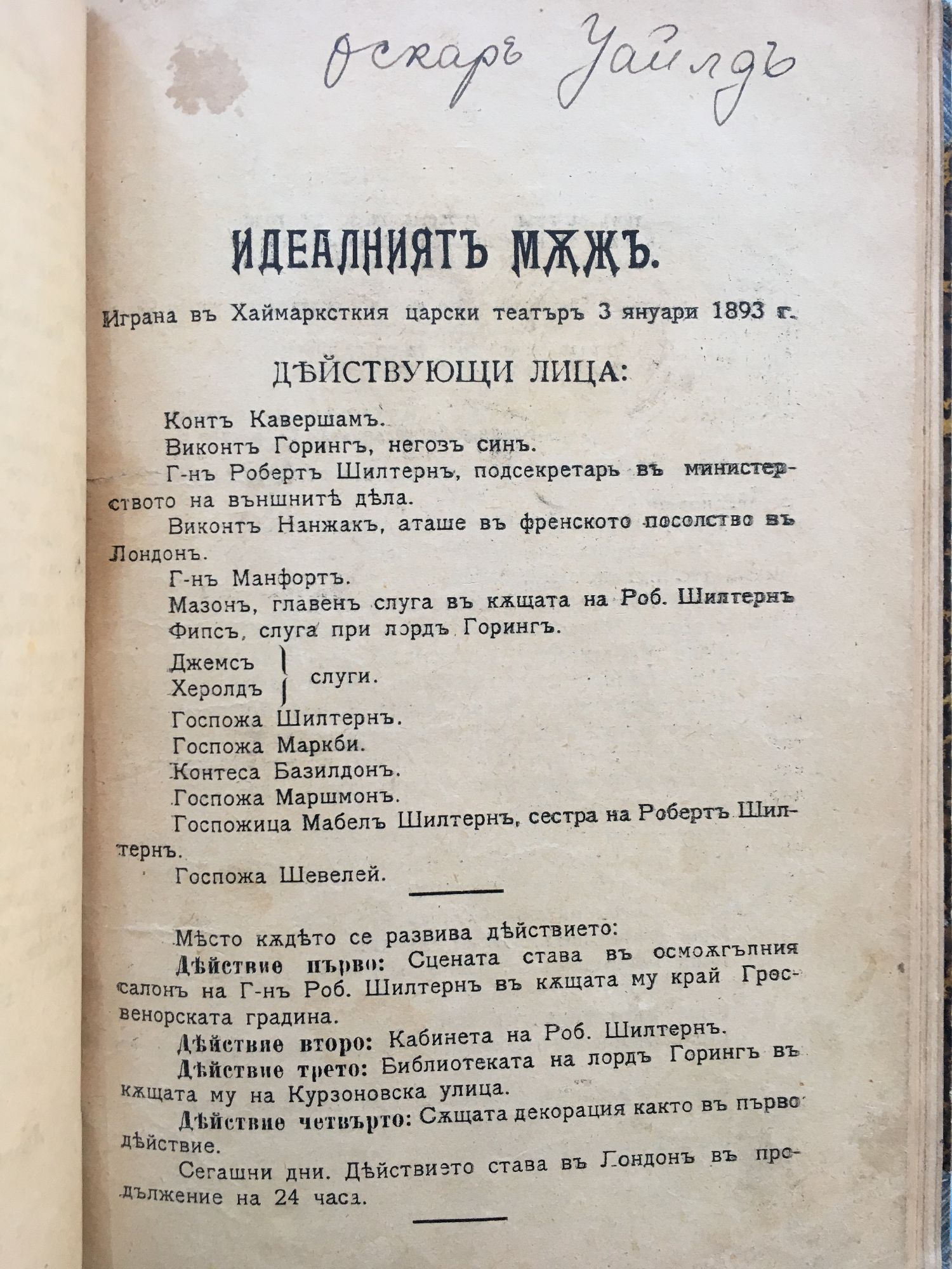 от Г. П. Стаматов, Валери Даскалова, Оскар Уайлд