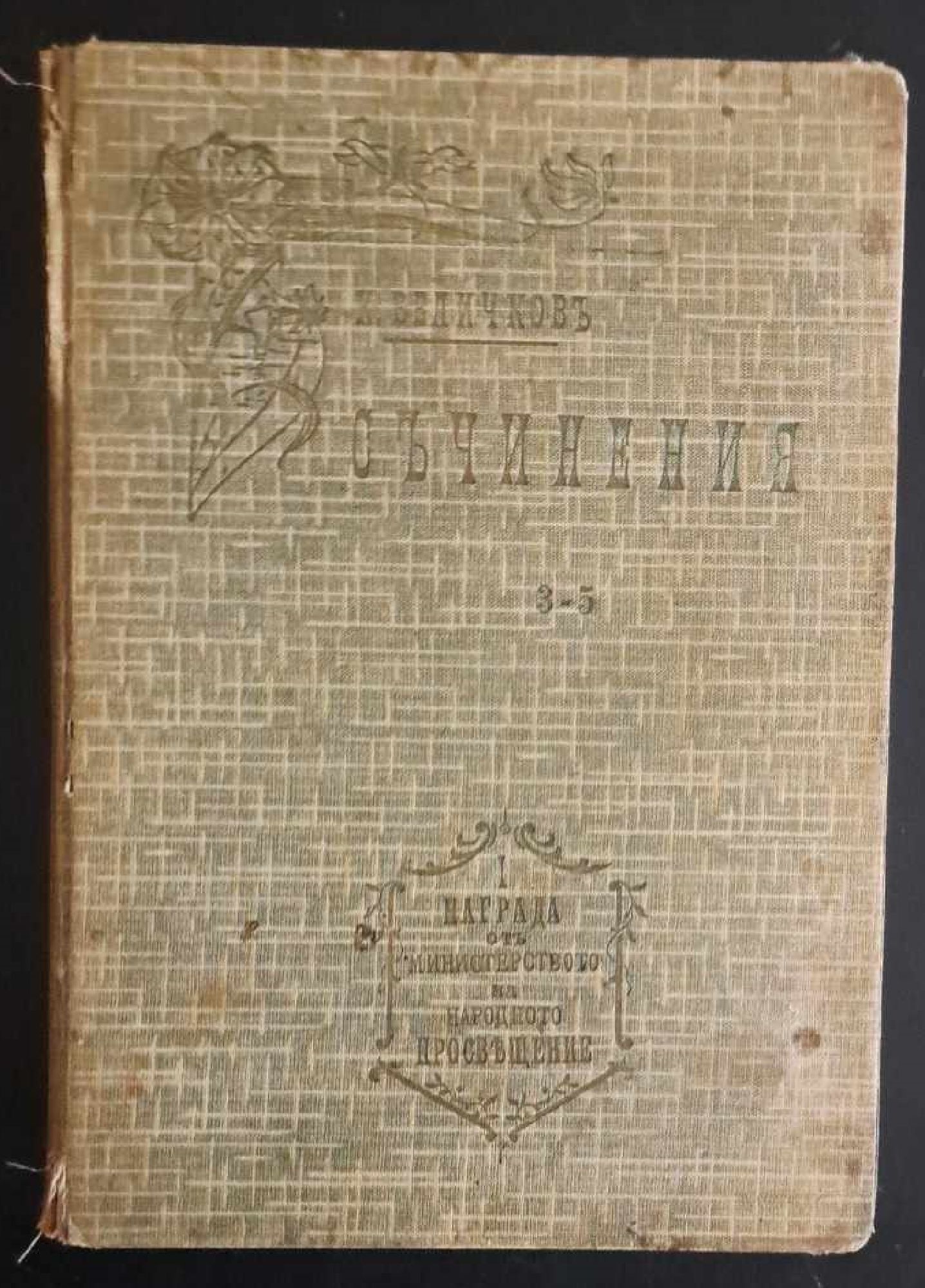 Томовете от 3 до 5 на пълното събрание на съчиненията на Константин Величков в обща подвързия. С надпис за награда от Министерството на народното просвещение на корицата.