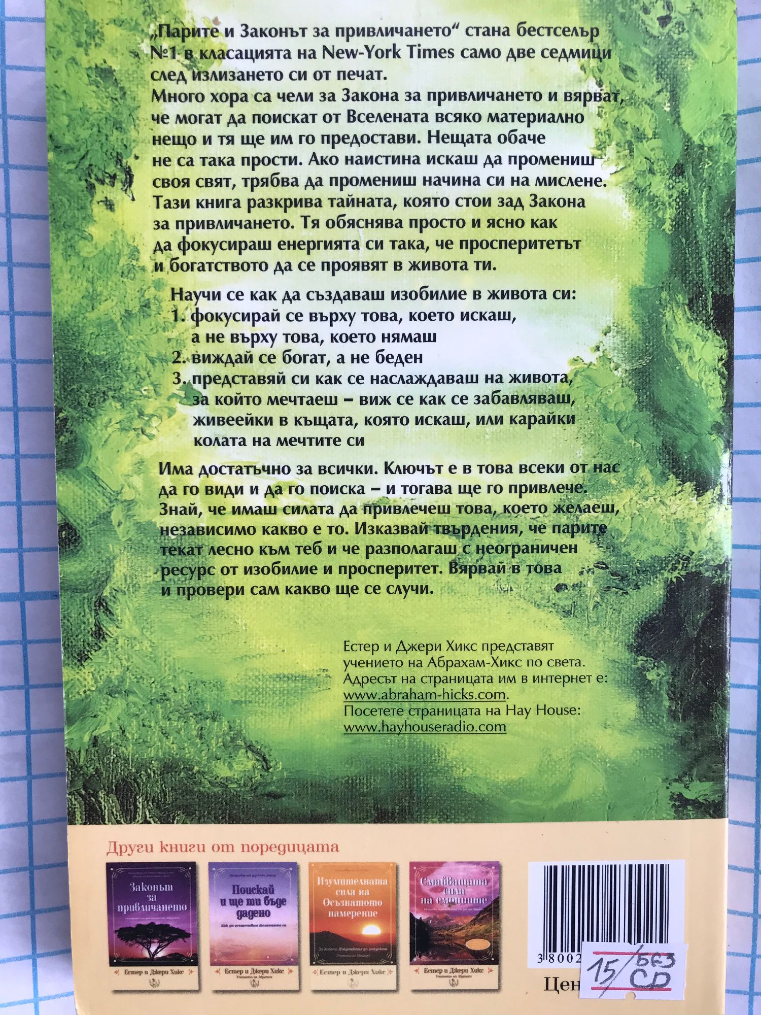 Много хора са чели за Закона за привличането и вярват, че могат да поискат от Вселената всяко материално нещо и тя ще им го предостави. Нещата обаче не са така прости. Ако наистина искаш да промениш своя свят, трябва да промениш начина си на мислене. Тази книга разкрива тайната, която стои зад Закона за привличането. Тя обяснява просто и ясно как да фокусираш енергията си така, че просперитетът и богатството да се проявят в живота ти. Научи се как да създаваш изобилие в живота си: фокусирай се върху това, което искаш, а не върху това, което нямаш виждай се богат, а не беден представяй си как се наслаждаваш на живота, за който мечтаеш - виж се как се забавляваш, живеейки в къщата, която искаш, или карайки колата на мечтите си Има достатъчно за всички. Ключът е в това всеки от нас да го види и да го поиска - и това ще го привлече. Знай, че имаш силата да привлечеш това, което желаеш, независимо какво е то. Изказвай твърдения, че парите текат лесно към теб и че разполагаш с неограничен ресурс от изобилие и просперитет. Вярвай в това и провери сам какво ще се случи.