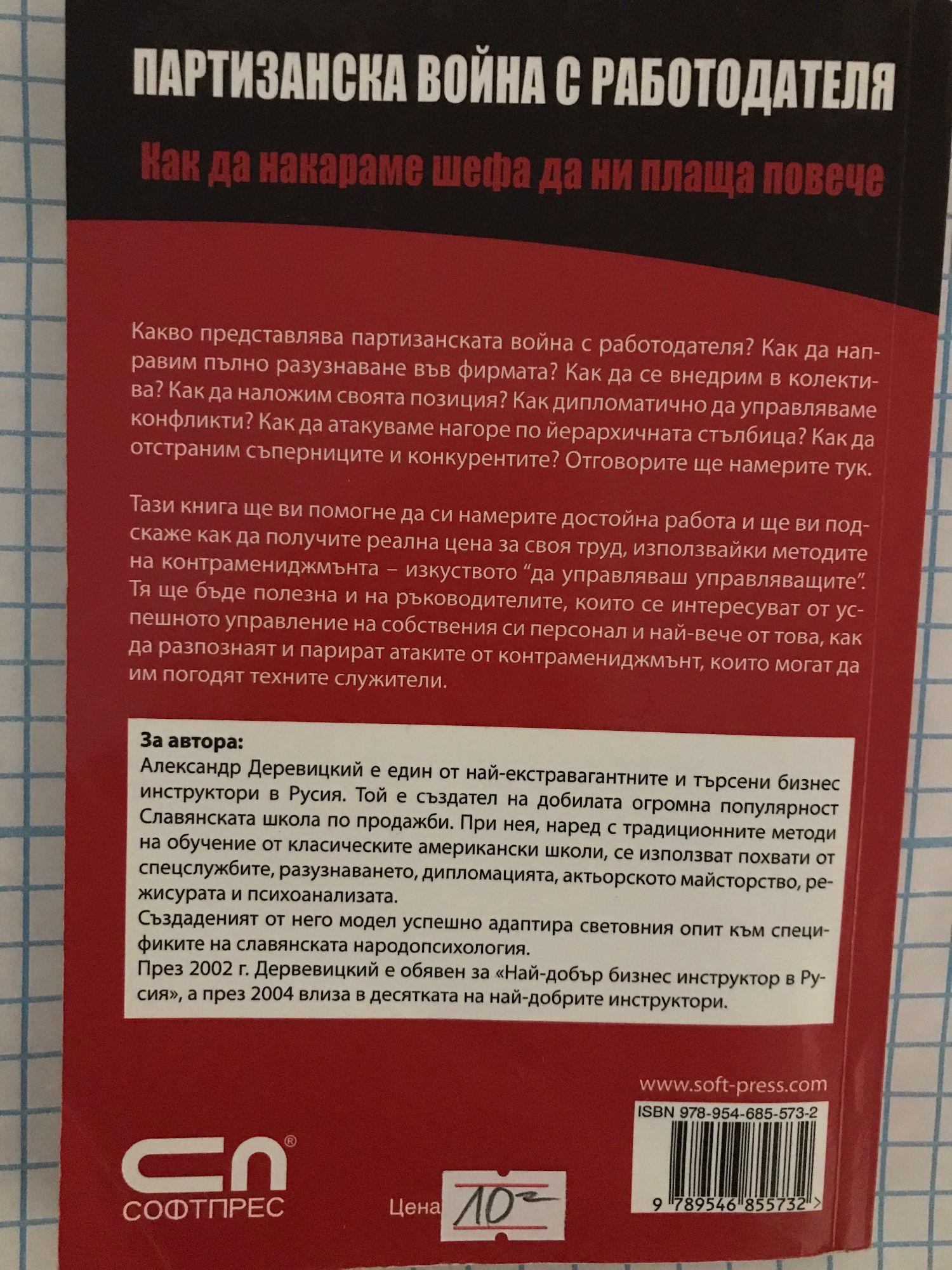 Какво представлява партизанската война с работодателя? Как да направим пълно разузнаване във фирмата? Как да се внедрим в колектива? Как да наложим своята позиция? Как дипломатично да управляваме конфликти? Как да атакуваме нагоре по йерархичната стълбица? Как да отстраним съперниците и конкурентите? Отговорите ще намерите тук. Тази книга ще ви помогне да си намерите достойна работа и ще ви подскаже как да получите реална цена за своя труд, използвайки методите на контрамениджмънта – изкуството “да управляваш управляващите”. Тя ще бъде полезна и на ръководителите, които се интересуват от успешното управление на собствения си персонал и най-вече от това, как да разпознаят и парират атаките от контрамениджмънт, които могат да им погодят техните служители.