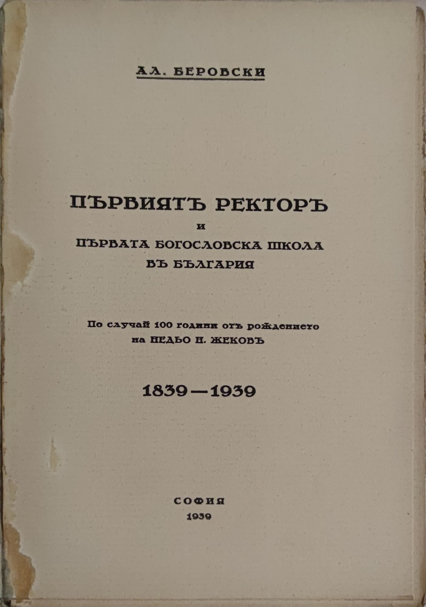 Първиятъ ректоръ и първата богославска школа въ България
