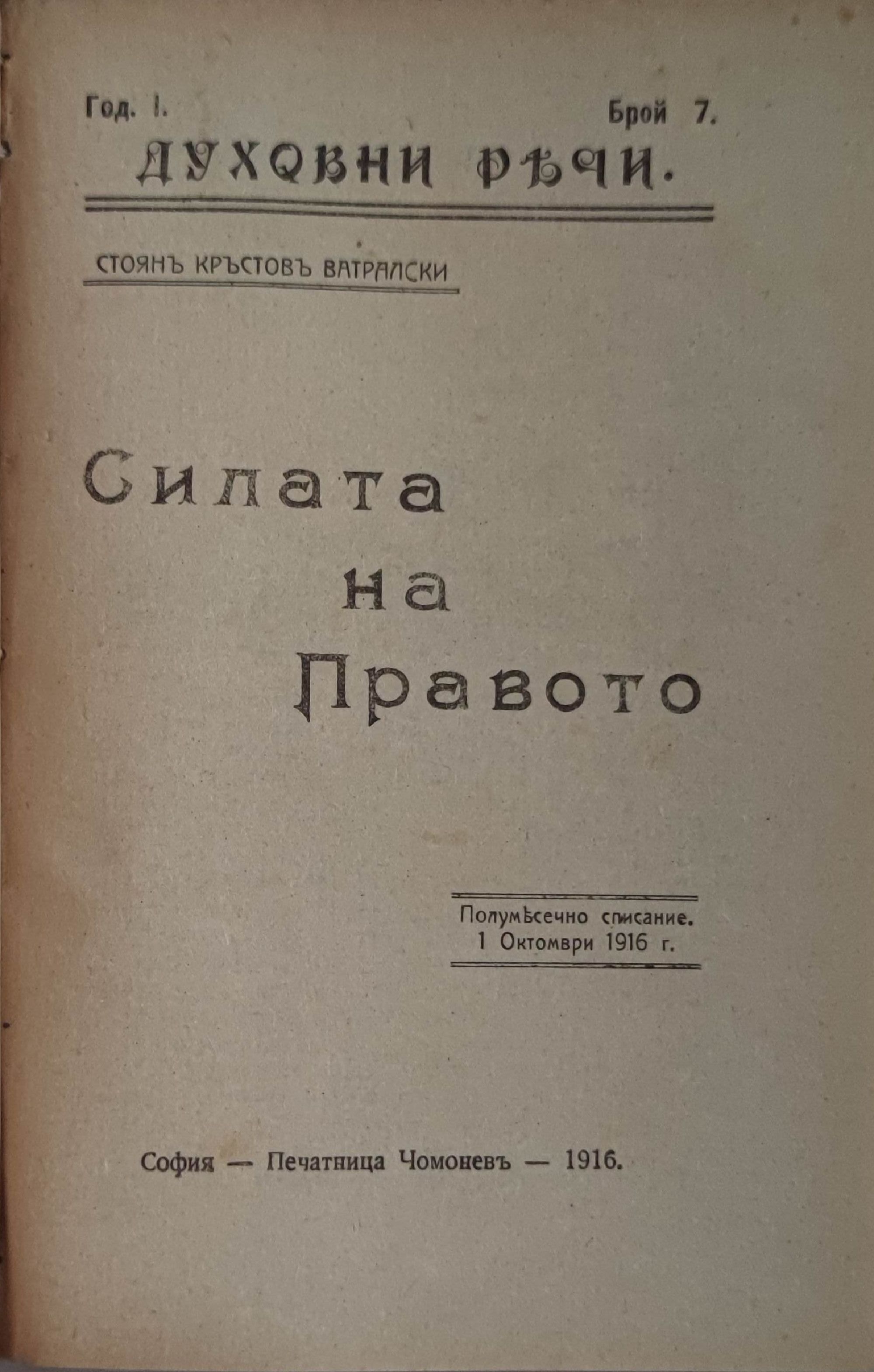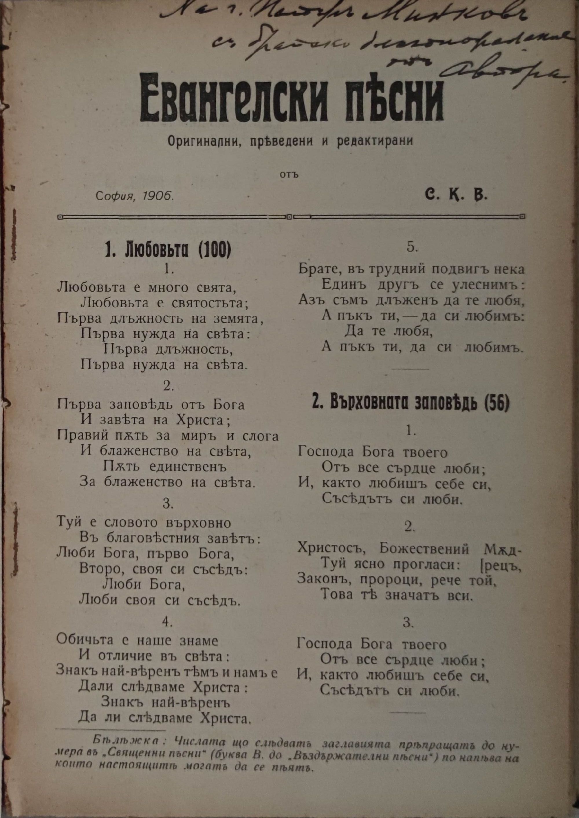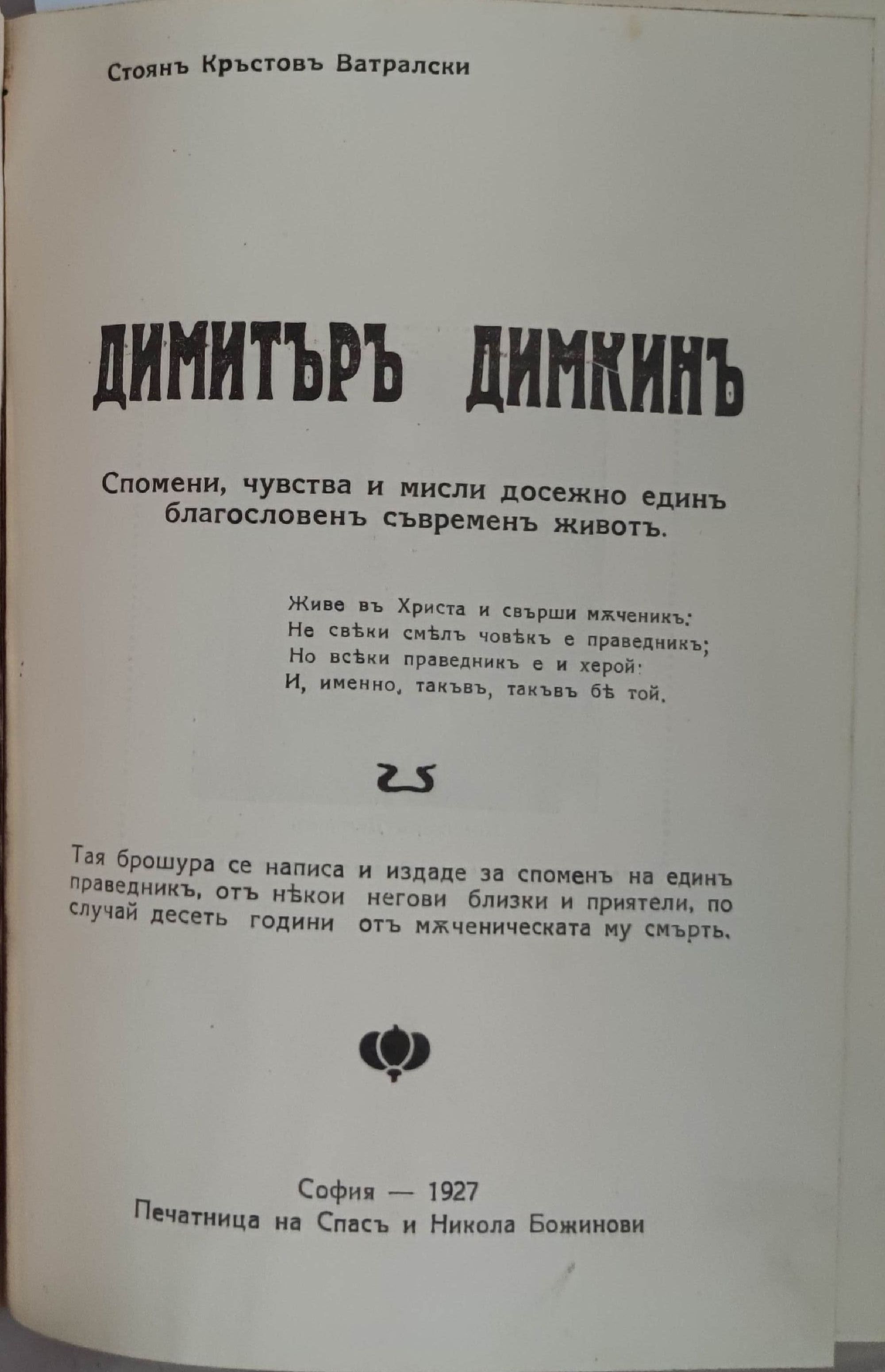 Първомъ правда - сбирка рими и поеми върху благовестни теми/ Силата на правото/Балканско държавничество/ Благословенъ/ Димитъръ Димкинъ - спомени, чувства и мисли досежно единъ благословенъ съвременъ животъ/ Евангелски песни/ Как да преподаваме религията