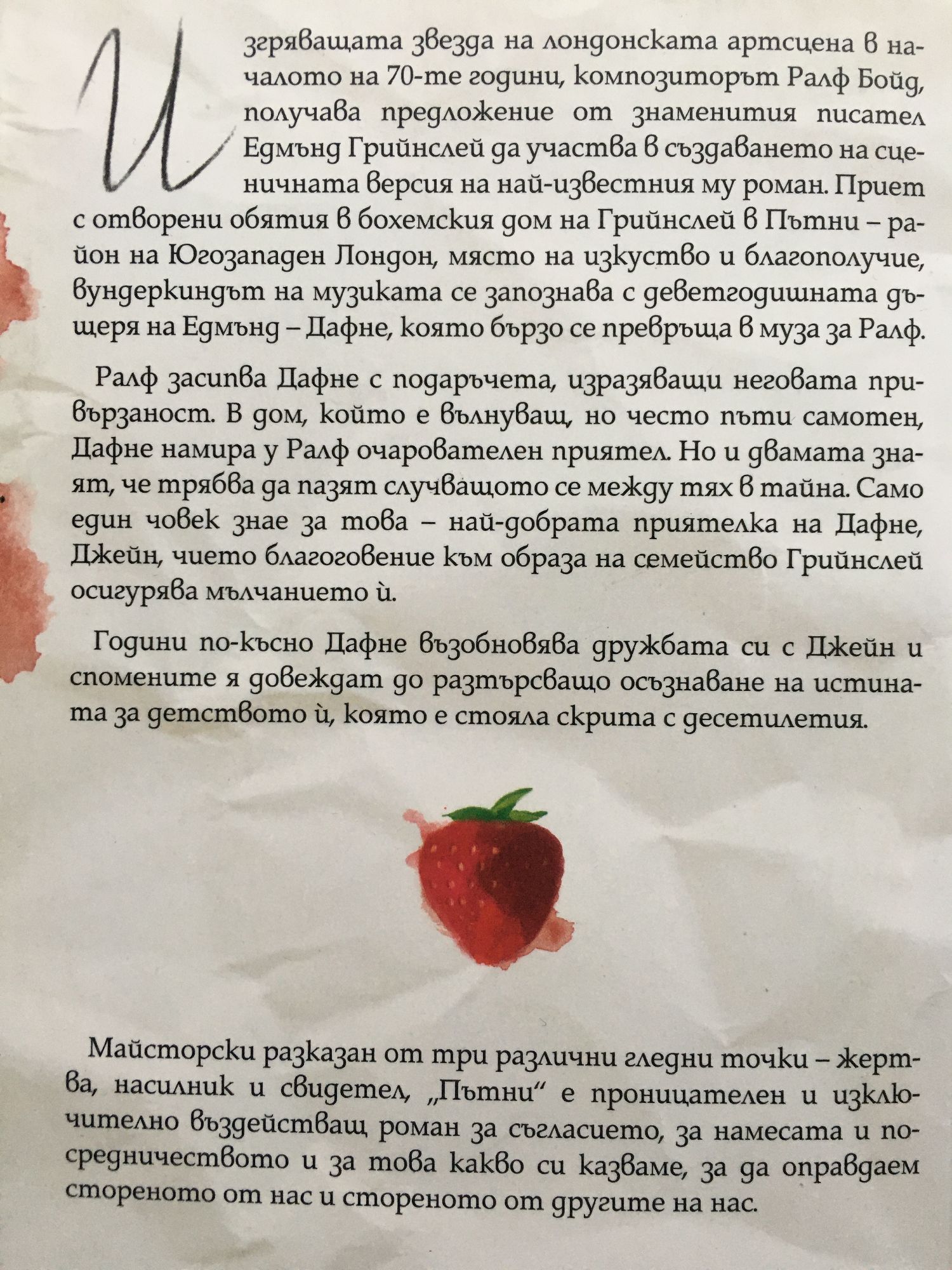 Изгряващата звезда на лондонската артсцена в началото на 70-те години, композиторът Ралф Бойд, получава предложение от знаменития писател Едмънд Грийнслей да участва в създаването на сценичната версия на най-известния му роман. Приет с отворени обятия в бохемския дом на Грийнслей в Пътни – район на Югозападен Лондон, място на изкуство и благополучие, вундеркиндът на музиката се запознава с деветгодишната дъщеря на Едмънд – Дафне, която бързо се превръща в муза за Ралф. Ралф засипва Дафне с подаръчета, изразяващи неговата привързаност. В дом, който е вълнуващ, но често пъти самотен, Дафне намира у Ралф очарователен приятел. Но и двамата знаят, че трябва да пазят случващото се между тях в тайна. Само един човек знае за това – най-добрата приятелка на Дафне, Джейн, чието благоговение към образа на семейство Грийнслей осигурява мълчанието й. Години по-късно Дафне възобновява дружбата си с Джейн и спомените я довеждат до разтърсващо осъзнаване на истината за детството й, която е стояла скрита с десетилетия. Майсторски разказан от три различни гледни точки – жертва, насилник и свидетел, „Пътни“ е проницателен и изключително въздействащ роман за съгласието, за намесата и посредничеството и за това какво си казваме, за да оправдаем стореното от нас и стореното от другите на нас.