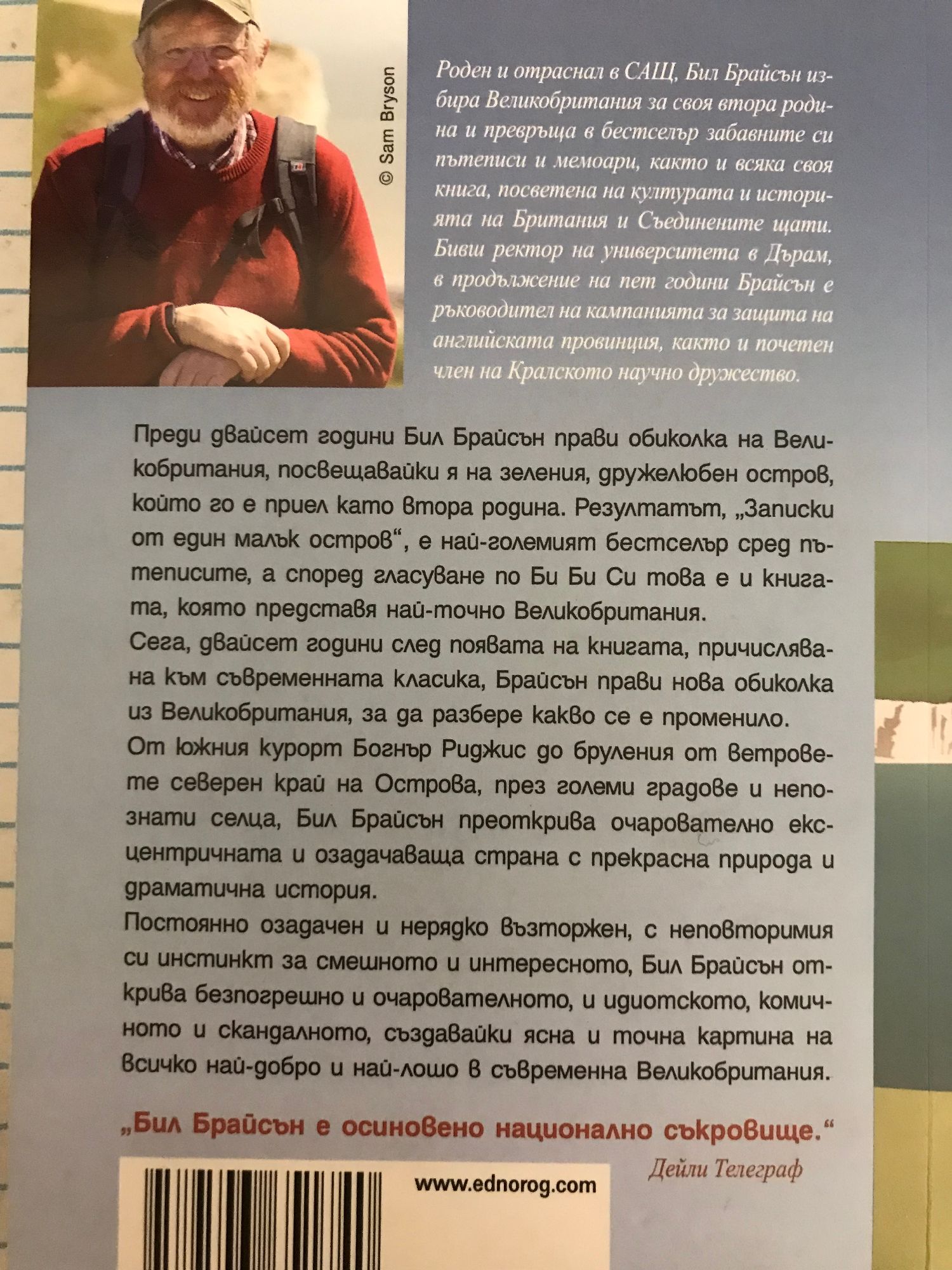 Преди двайсет години Бил Брайсън потегля на обиколка на Великобритания, посвещавайки я на зеления, дружелюбен остров, който се е превърнал в негова втора родина. Резултатът, „Записки от един малък остров”, е най-големият бестселър сред пътеписите, а според гласуване, организирано от BBC, това е и книгата, която представя най-точно Великобритания. Сега двайсет години след появата на книгата, превърнала се в част от съврменната класика, Брайсън предприема нова обиколка из Великобритания, за да разбере какво се е променило и дали нещо е останало същото. От южния курорт Богнър Риджис до бруления от ветровете северен край на Острова, през големи градове и непознати селца, той преоткрива очарователно ексцентричната страна с прекрасна природа и драматична история. Комични ситуации и забавни коментари се редуват с немалко сериозни теми, поднесени с неповторимото умение на Брайсън – начините, по които Британия се бори за своята природа, решава екологични проблеми и съхранява историческите си забележителности, любопитни, нови и не толкова познати факти за миналото и настоящето на страната и за личности, изграждали облика на Великобритания. Постоянно озадачен и нерядко възторжен, с неповторимия си инстинкт за смешното и интересното, Бил Брайсън безпогрешно открива както очарователното и идиотското, така и комичното и скандалното, рисувайки ясна и точна картина на всичко най-добро и най-лошо в съвременна Великобритания.