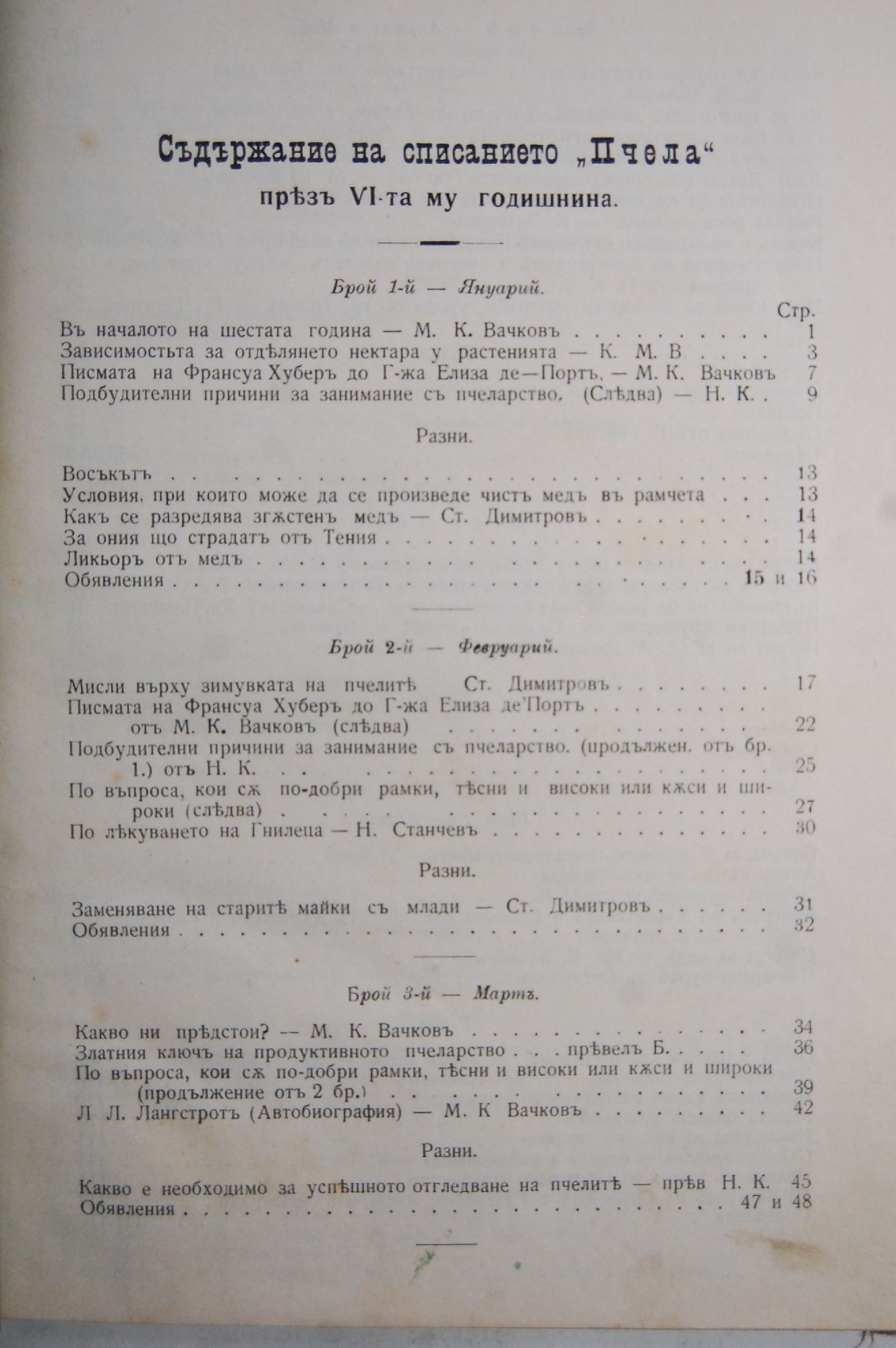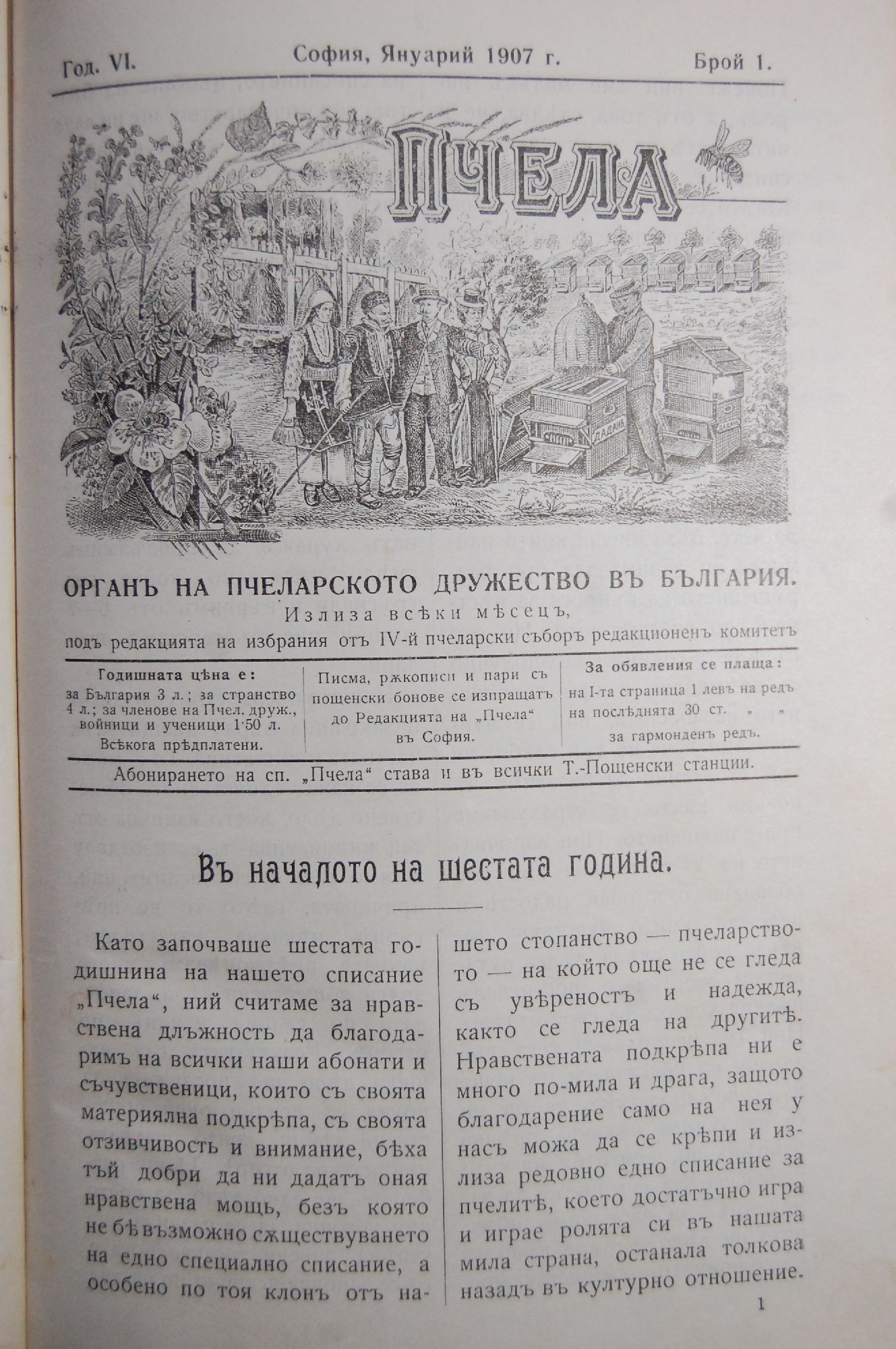 Списание "Пчела", Брой 1, Год. VI, 1907 г.