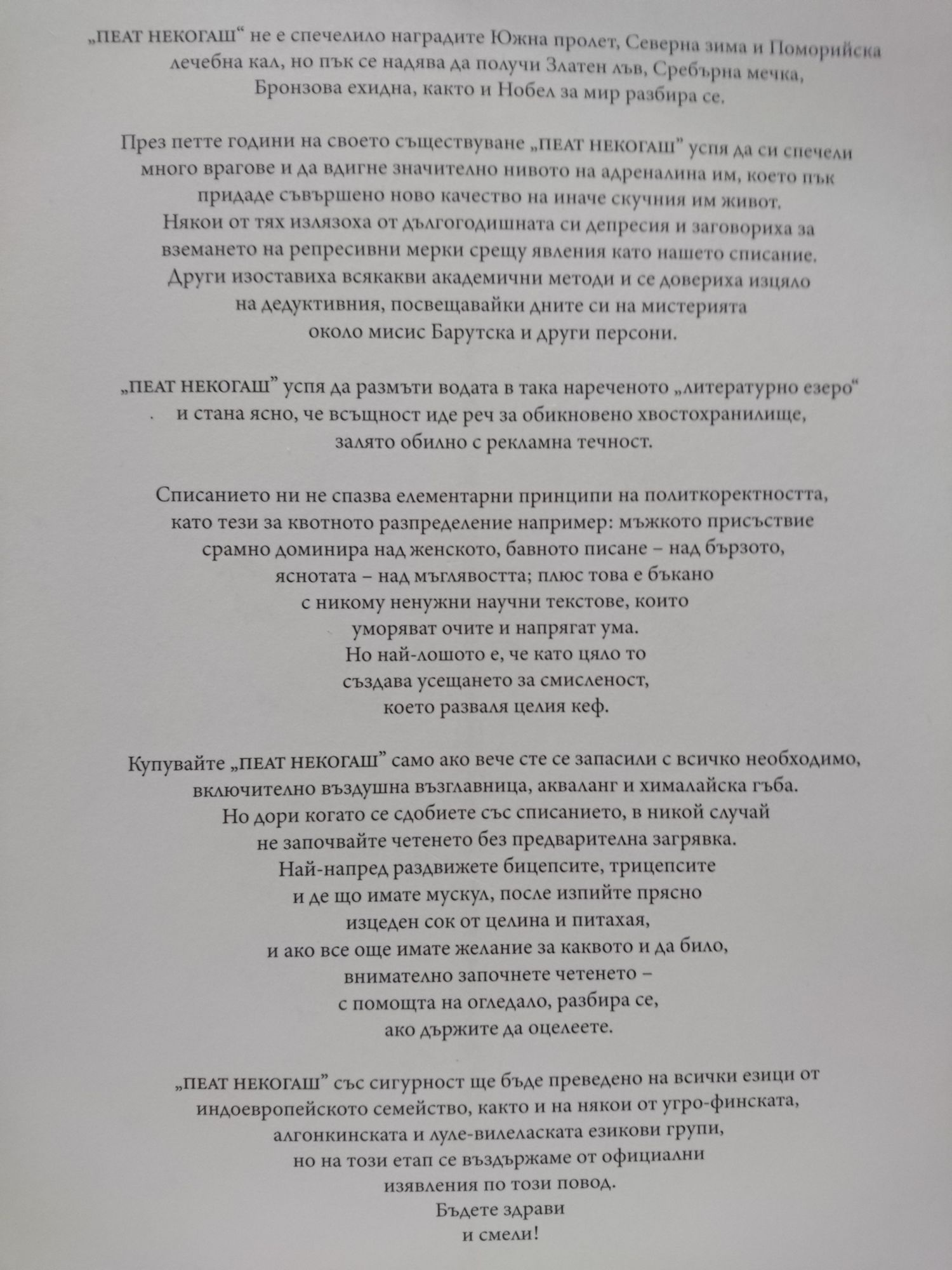 Списание за литература, философия и научна мисъл, специално издание