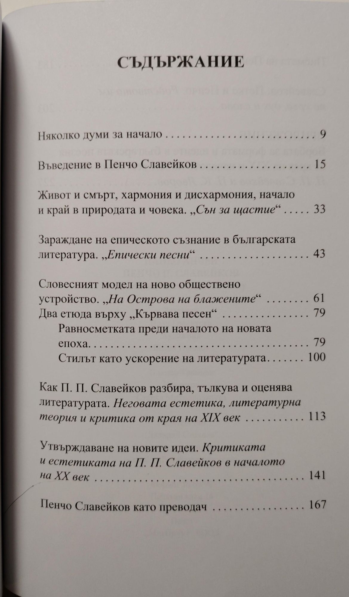 Пенчо Славейков е все още не достатъчно прочетен, анализиран, тълкуван и разбран. А той играе изключително важна роля в българската литература и духовна история от края на XIX и началото на XX век. Книгата изследва преди всичко идеите на Пенчо Славейков и на времето, в което той живее и което пресъздава и изразява. Това е сложно и противоречиво време, богато на факти и явления, на висока литература и велики писатели. Но тя разказва и за живота на великия писател, за неговата обществена дейност.