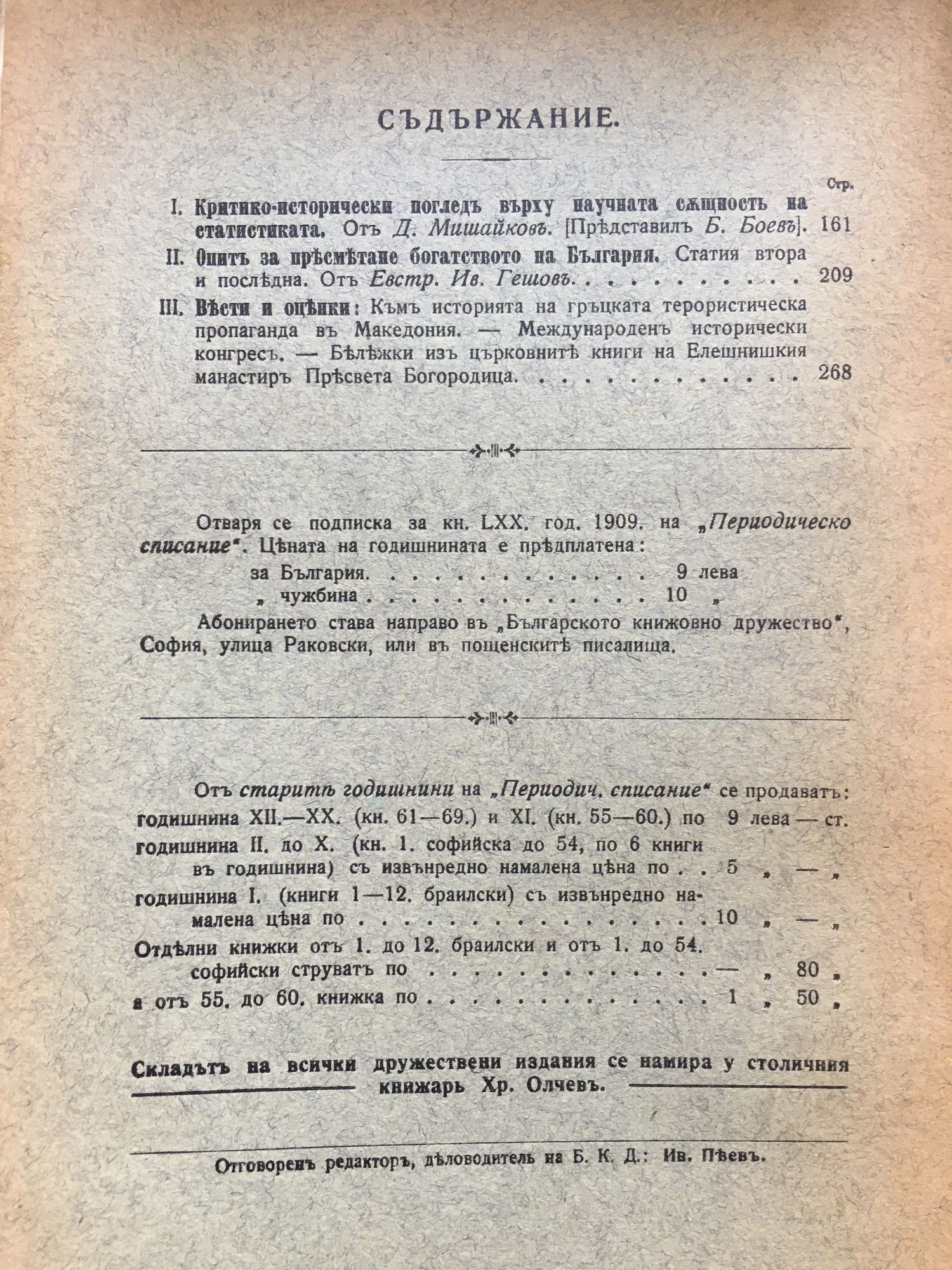 Годишнина XXI (21), 3 - 4 свезка - 1909
