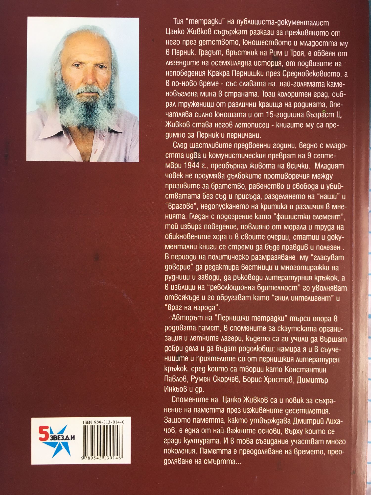 Тия "тетрадки" на публициста-документалист Цанко Живков съдържат разкази за преживяното от него през детството, юношеството и младостта му в Перник. Градът, връстник на Рим и Троя, е обвеян от легендите на осемхилядна история, от подвизите на непобедения Кракра Пернишки през Средновековието, а в по-ново време - със славата на най-голямата каменовъглена мина в страната. Този колоритен град, събрал труженици от различни краища на родината, впечатлява силно юношата и от 15-годишна възраст Ц.Живков става негов летописец - книгите му са предимно за Перник и перничани. След щастливите предвоенни години, ведно с младостта идва и комунистическия преврат на 9 септември 1944 г., преобърнал живота на всички. Младият човек не проумява дълбоките противоречия между призивите за братство, равенство и свобода и убийстватата без съд и присъда, разделянето на "наши" и "врагове", недопускането на критика и различия в мненията. Гледан с подозрение като "фашистки елемент", той избира поведение, повлияно от морала и труда на обикновените хора и в своите очерци, статии и документални книги се стреми да бъде правдив и полезен. В периоди на политическо размразяване му "гласуват доверие" да редактира вестници и многотиражки на рудници и заводи, да ръководи литературния кръжок, а в изблици на "революционна бдителност" го уволняват отвсякъде и го обругават като "гнил интелигент" и "враг на народа". Авторът на "Пернишки тетрадки" търси опора в родовата памет, в спомените за скаутската организация и летните лагери, където са ги учили да вършат добри дела и да бъдат родолюбци; намира я и в съучениците и приятелите си от пернишкия литературен кръжок, сред които са творци като Константин Павлов, Румен Скорчев, Борис Христов, Димитър Инкьов и др. Спомените на Цанко Живков са и повик за съхранение на паметта през изживените десетилетия. Защото паметта, както утвърждава Дмитрий Лихачов, е една от най-важните основи, върху които се гради културата. И в това съзидание участват много поколения. Паметта е преодоляване на времето, преодоляване на смъртта...