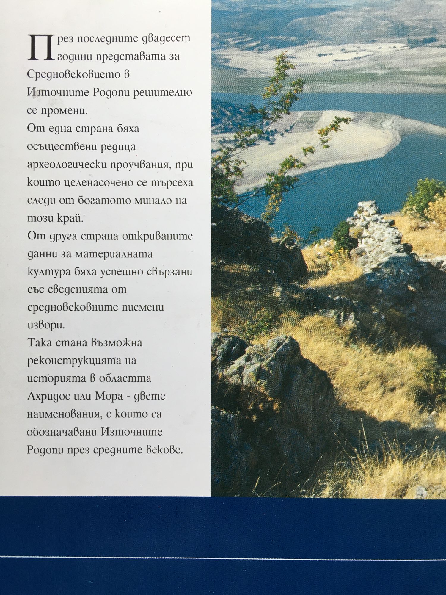През последните двадесет години представата за Средновековието в Източните Родопи решително се промени. От една страна бяха осъществени редица археологически проучвания, при които целенасочено се търсеха следи от богатото минало на този край. От друга страна откриваните данни за материалната култура бяха успешно свързани със сведенията от средновековните писмени извори. Така стана възможна реконструкцията на историята в областта Ахридос или Мора – двете наименования, с които са обозначавани Източните Родопи през средните векове.