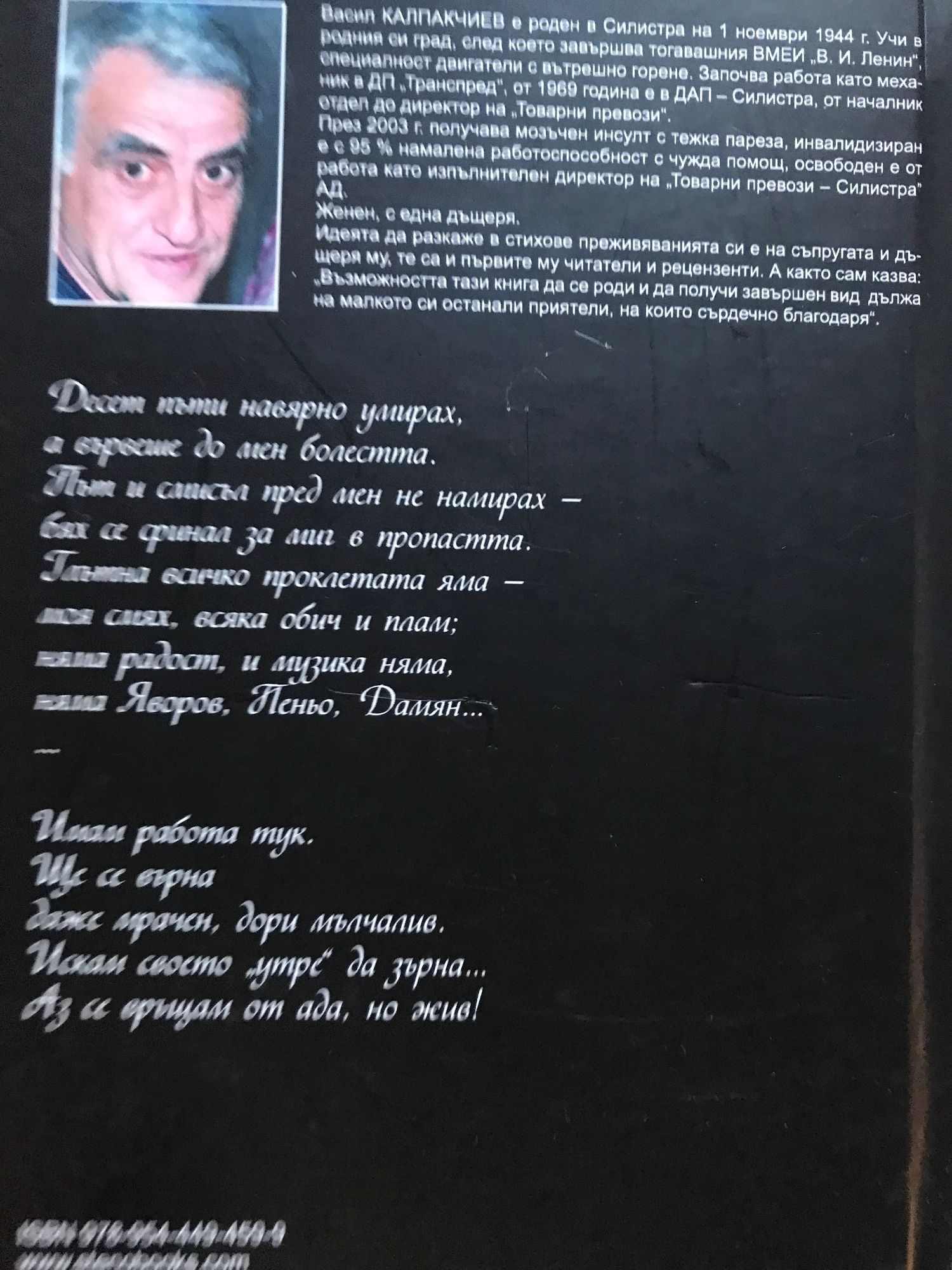 22,00 лв. / 11,25 €Отлично състояние на книжното тяло. Без следи от употреба с лично посвещение и автограф.