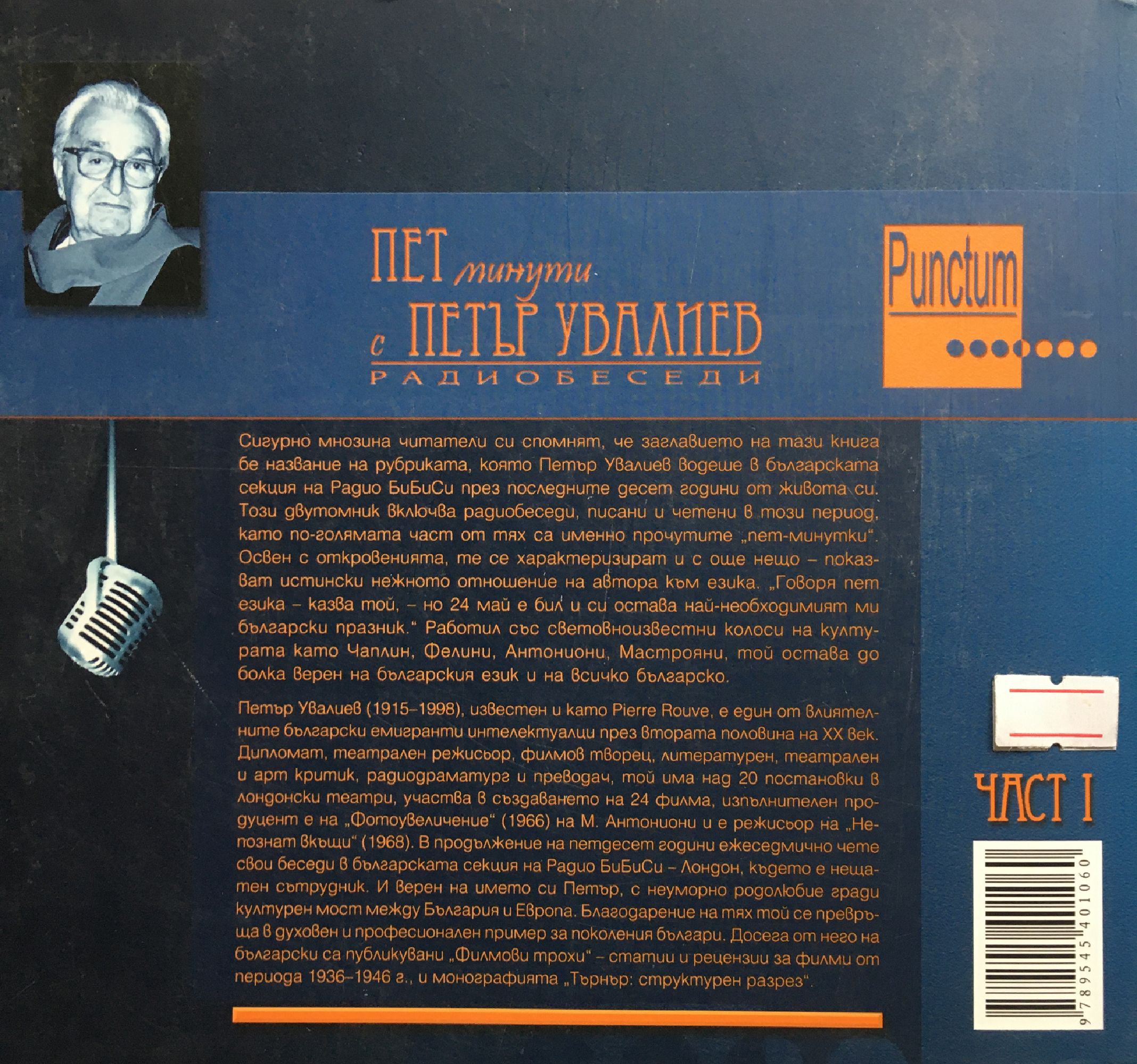 Петър Увалиев, помнен също като Pierre Rouve е работил със световноизвестните Чаплин, Фелини, Антониони, Мастрояни. Той е един от влиятелните европейски емигранти интелектуалци от български произход през втората половина на ХХ век. Дипломат, театрален режисьор, филмов творец, литературен, театрален и арт критик, радиодраматург и преводач, с над 20 постановки в лондонски театри, участвал в създаването на 24 филма, изпълнителен продуцент на "Фотоувеличение" (1966) на М. Антониони, режисьор на "Непознат вкъщи" (1968). Заглавието на книгата е по рубриката, водена от Петър Увалиев в българската секция на Радио БиБиСи. Изданието включва радиобеседи, по-голямата част от които са т. нар. "пет-минутки". Те показват също отношението на Увалиев към българския език. Благодарение на тях той става пример за много българи. Досега от него на български са публикувани "Филмови трохи" - сборник със статии и рецензии от 1936 - 1946 г., и монографията "Търнър: структурен разрез" в превод от френски език.