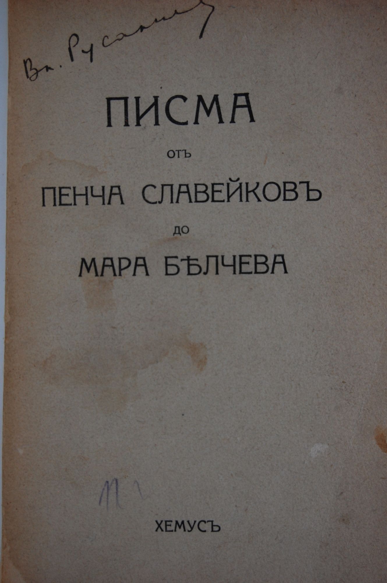 Писма отъ Пенча Славейковъ до Мара Белчева