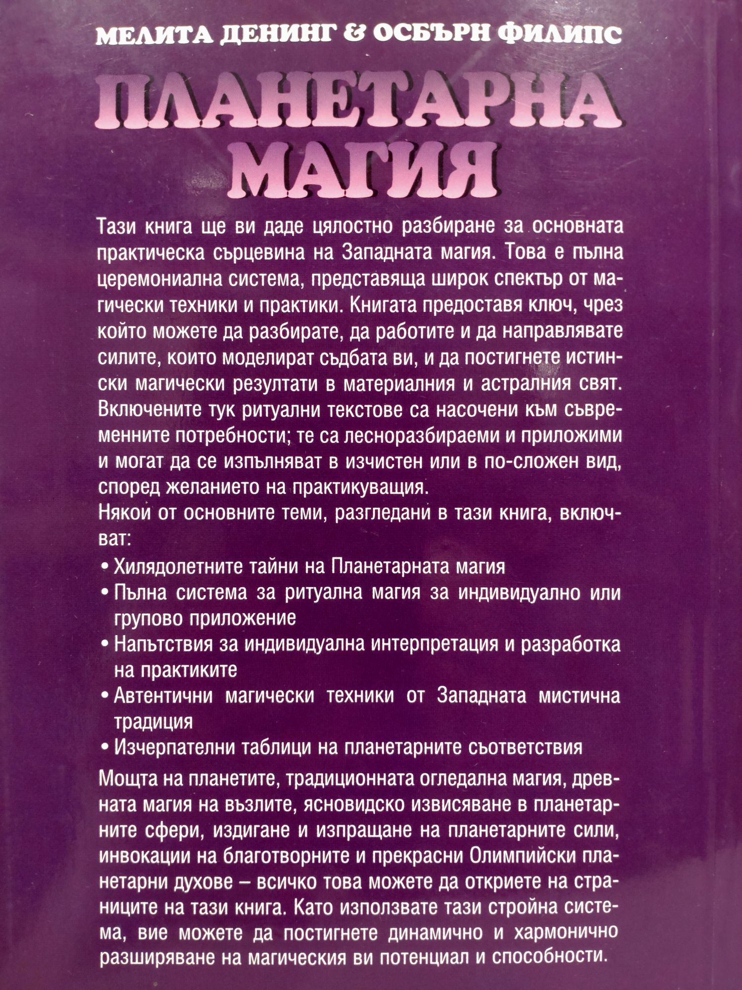 Пълната церемониална система на Западната магия, представяща широк спектър от техники и практики. Тази книга дава инструментите, с които да направлявате силите, моделиращи съдбата ви.