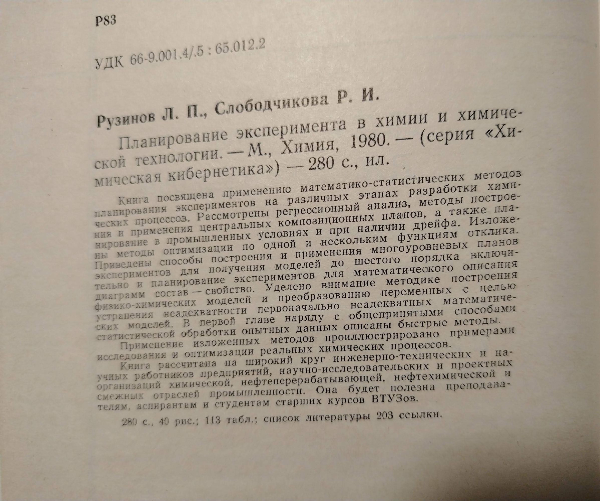 Планирование эксперимента в химии и химической технологии