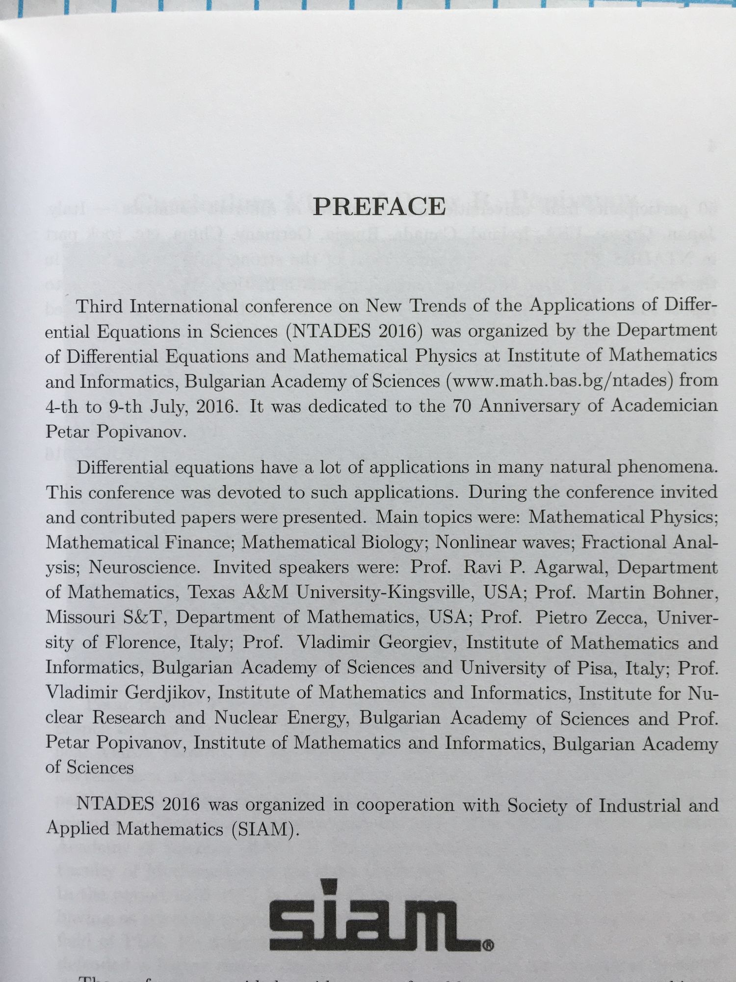Proceedings of the Third International Conference on New Trends of the Applications of DifferentialEquations in Sciences (NTADES 2016) in Cooperation of Society of Industrial and Applied Mathematics (SIAM)
