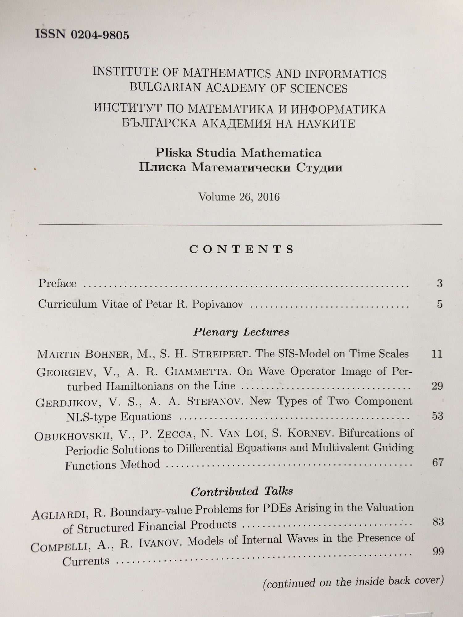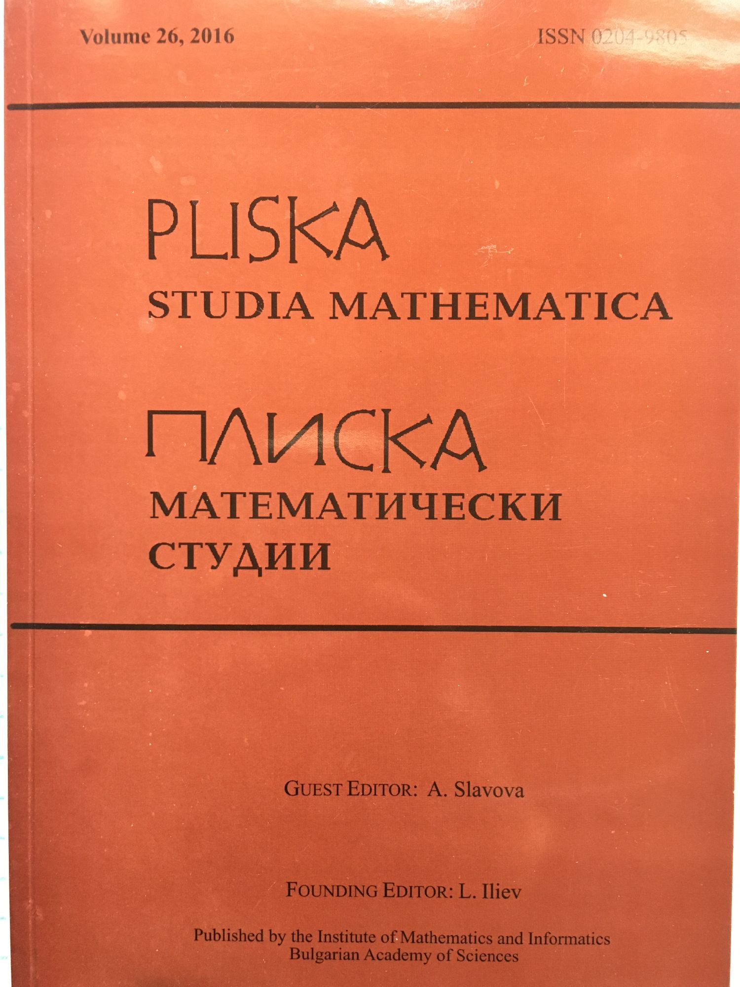 Pliska Studia Mathematica - volume 26, 2016 / Плиска математически студии - том 26, 2016