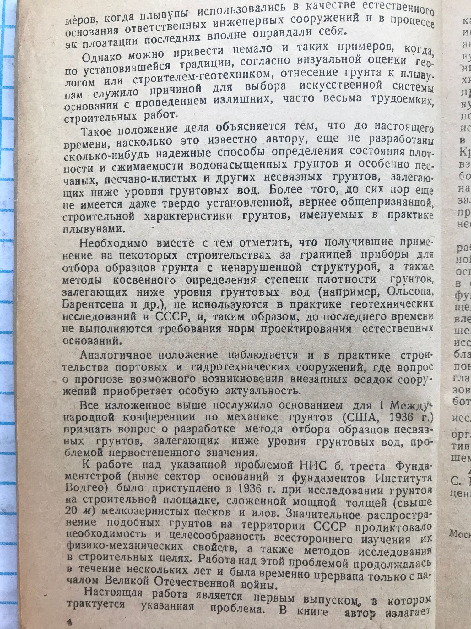 Плывуны как основание сооружений и методы их исследования на месте пострийки