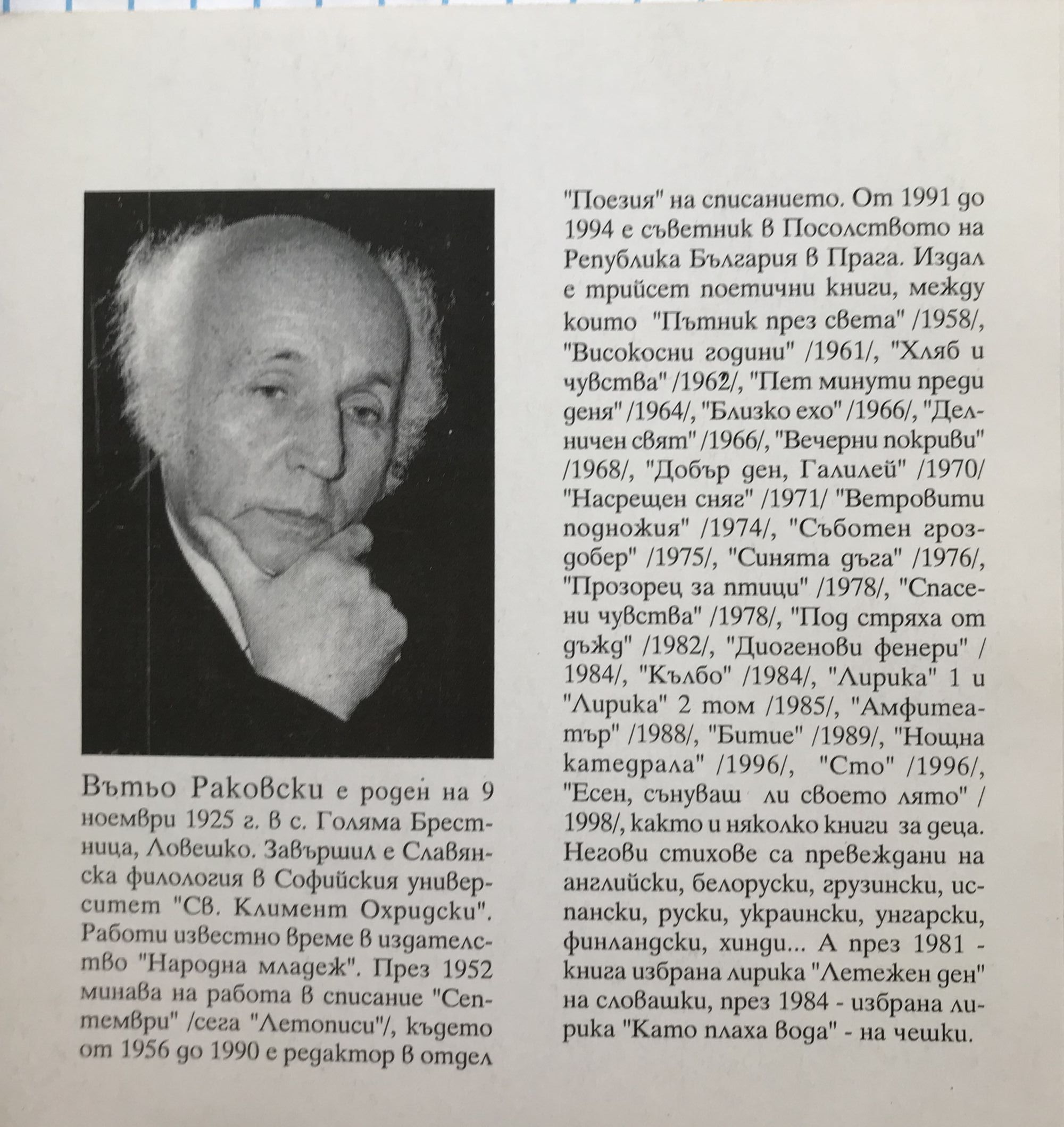 14,00 € / 27,38 лв.Много добро състояние на книжното тяло. С пожълтели страници, лично посвещение и автограф.
