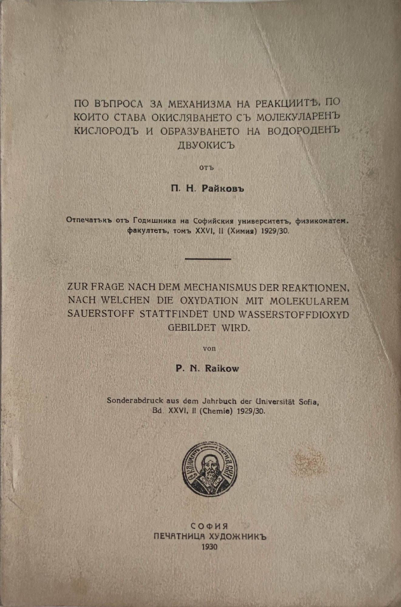 С резюме на немски. Авторът е български химик. Негова статия, публикувана в "Хемише централблат" през 1886 г. се смята за първата научна публикация на български автор.