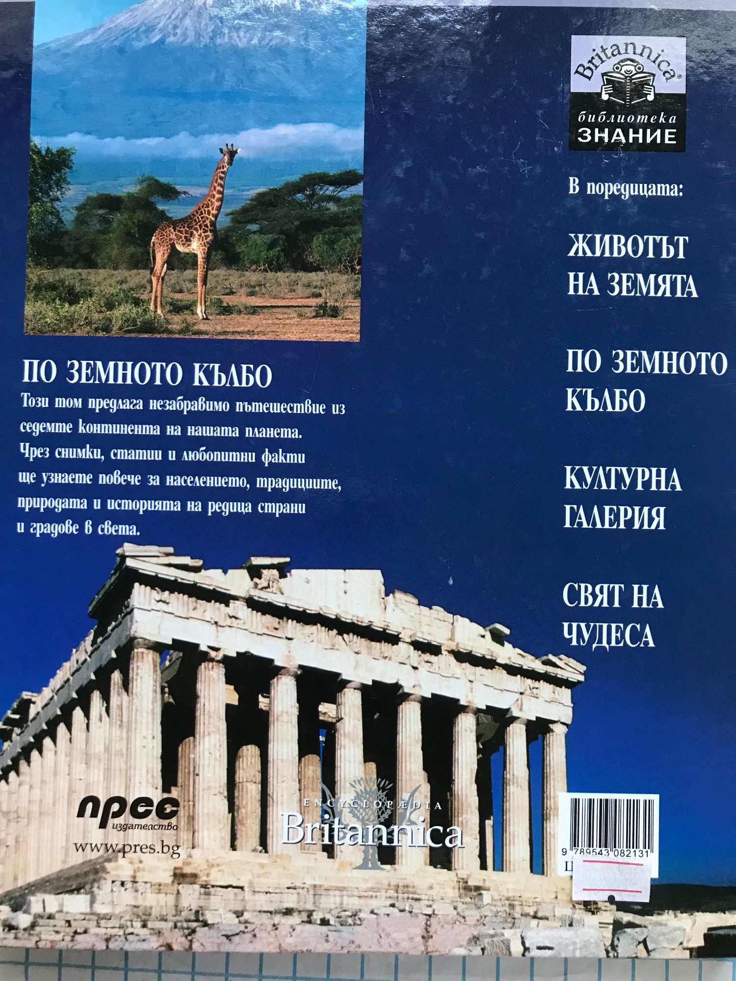 Този том предлага незабравимо пътешествие из седемте континента на нашата планета. Чрез снимки, статии и любопитни факти ще узнаете повече за населението, традициите, природата и историята на редица страни и градове в света.