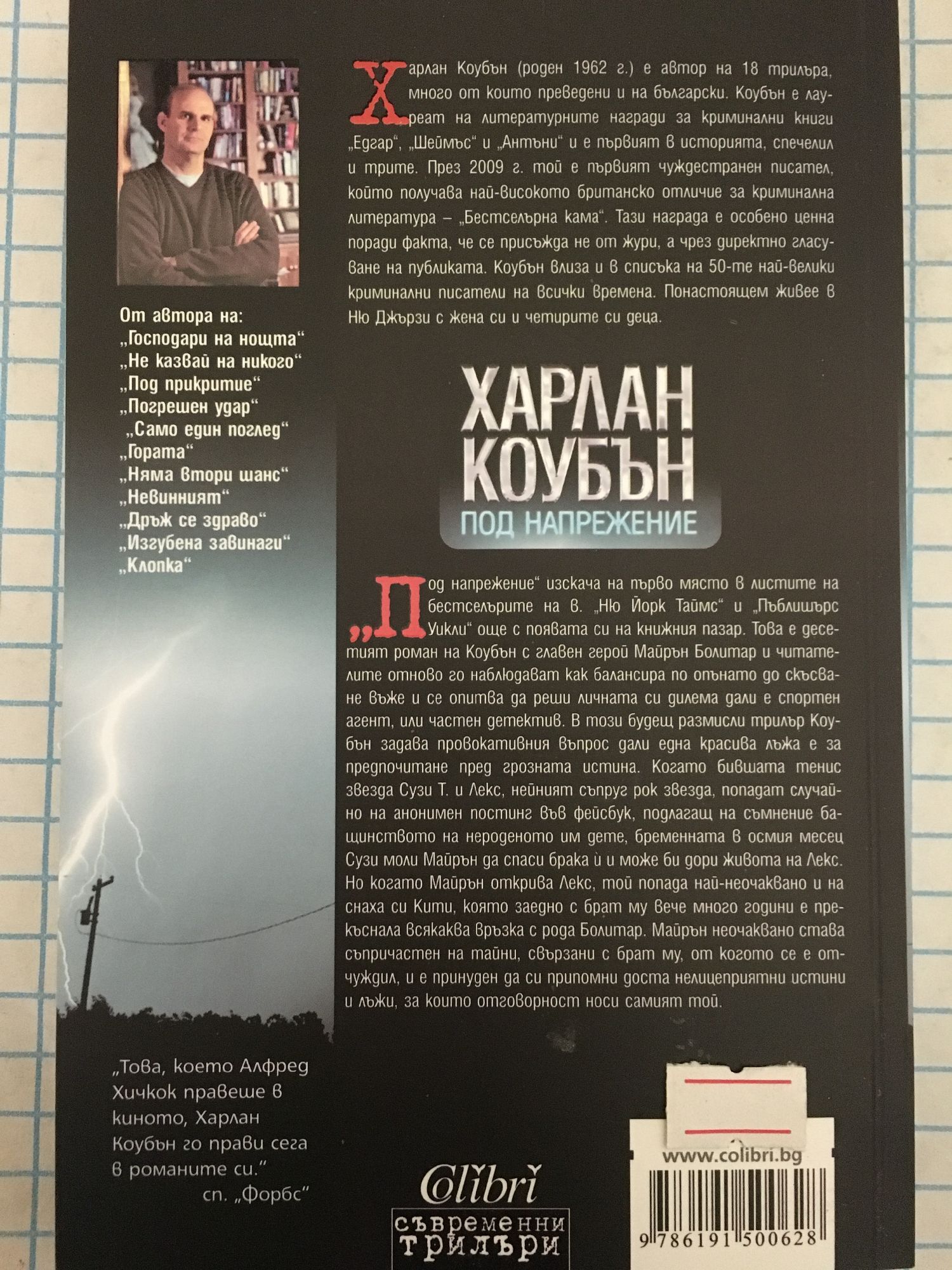 "Под напрежение" изскача на първо място в листите на бестселвърите на в. "Ню Йорк Таймс" и "Пъблишърс Уикли" още с появата си на книжния пазар. Това е десетият роман на Коубън с главен герой Майрън Болитар и читателите отново го наблюдават как балансира по опънато до скъсване въже и се опитва да реши личната си дилема дали е спортен агент, или частен детектив. В този будещ размисли трилър Коубън задава провокативния въпрос дали една красива лъжа е за предпочитане пред грозната истина. Когато бившата тенис звезда Сузи Т. и Лекс, нейният съпруг рок звезда, попадат случайно на анонимен постинг във фейсбук, подлагащ на съмнение бащинството на нероденото им дете, бременната в осмия месец Сузи моли Майрън да спаси брака й и може би дори живота на Лекс. Но когато Майрън открива Лекс, той попада най-неочаквано и на снаха си Кити, която заедно с брат му вече много години е прекъснала всякаква връзка с рода Болитар. Майрън неочаквано става съпричастен на тайни, свързани с брат му, от когото се е отчуждил, и е принуден да си припомни доста нелицеприятни истини и лъжи, за които отговорност носи самият той.