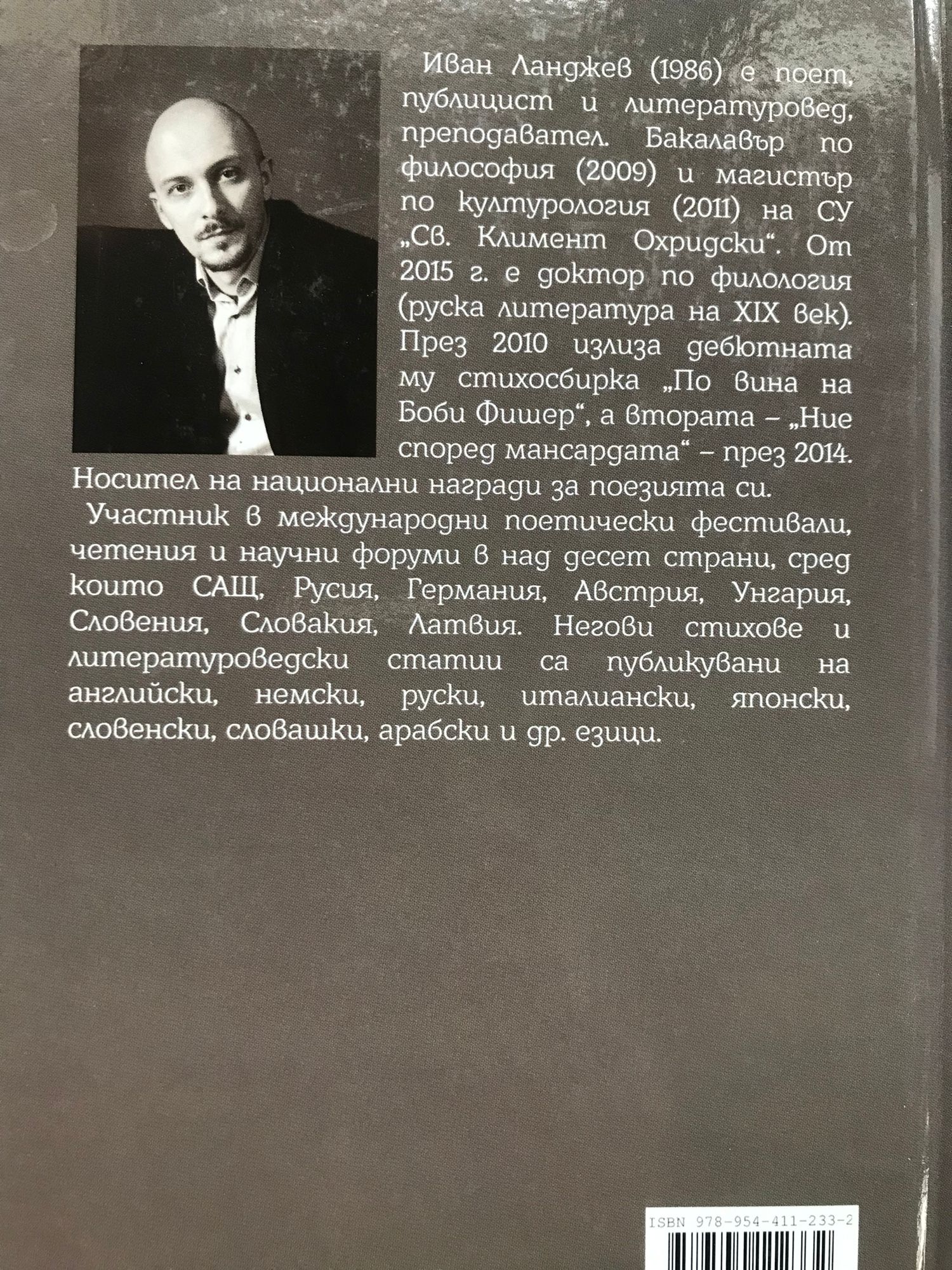 Иван Ланджев е поет, есеист и сценарист. Доктор по руска класическа литература (СУ "Св. Климент Охридски"), преди това е завършил философия и културология в същия университет. Победител в Националния конкурс за поезия "Веселин Ханчев" (2009), носител на Наградата за дебют "Южна пролет" (2011), на наградата "Памет" (на името на Георги Рупчев) (2014), два пъти номиниран за Националната награда за поезия "Иван Николов" (2010; 2014). Участвал е в международни поетични фестивали, четения и научни конференции в САЩ, Русия, Германия, Австрия, Словения, Словакия, Унгария, Латвия. Негови стихотворения са преведени на английски, немски, испански, италиански, словенски, хърватски, словашки, арабски, маратхи. Автор на стихосбирките: "По вина на Боби Фишер" (2010) и "Ние според мансардата" (2014). Иван Ланджев е участник в международни поетически фестивали, четения и научни форуми в над десет страни, сред които САЩ, Русия, Германия, Австрия, Унгария, Словения, Словакия, Латвия. Негови стихове и литературоведски статии са публикувани на английски, немски, руски, италиански, японски, словенски, словашки, арабски и др. езици.
