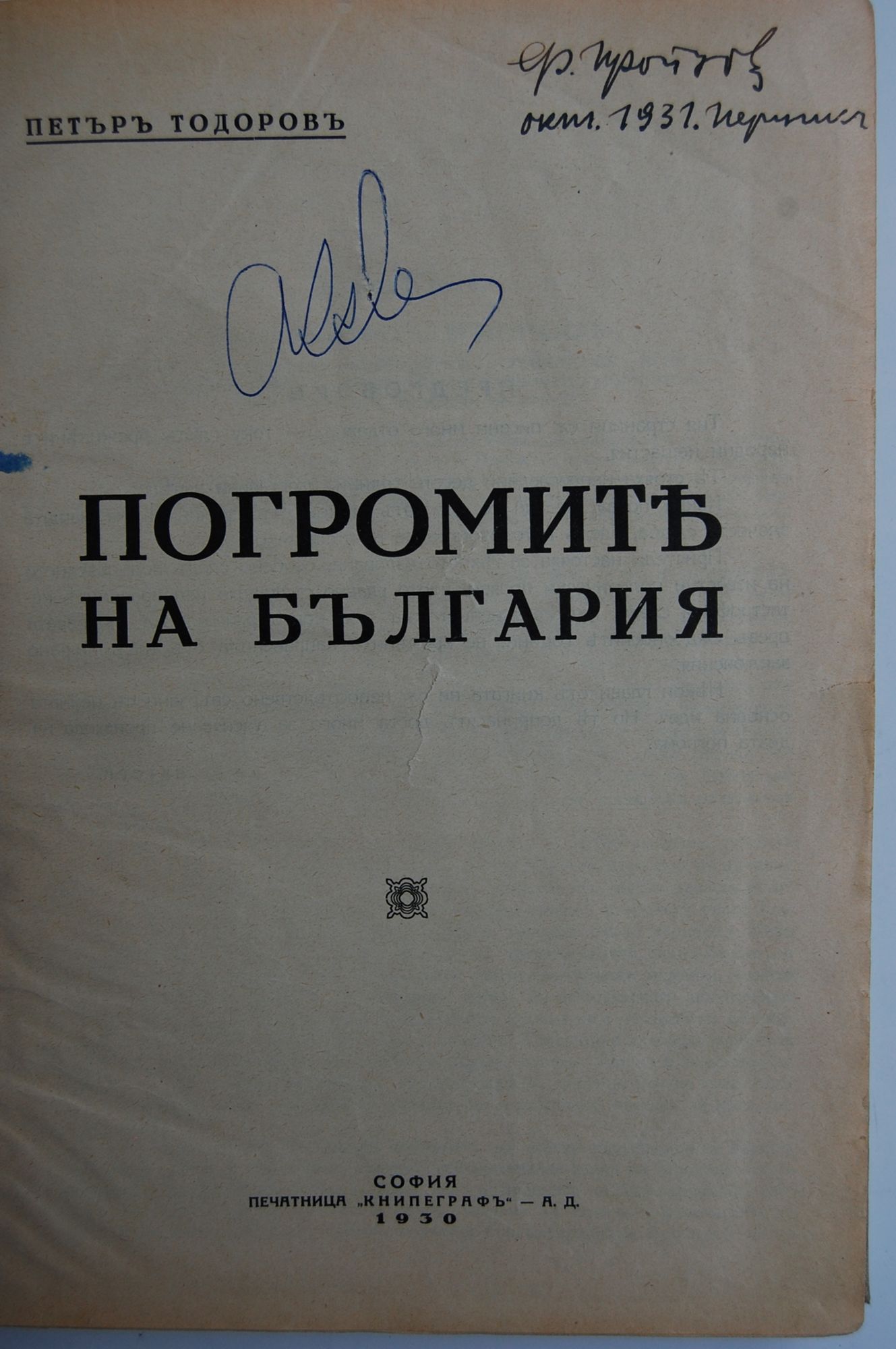 Накратко, целта на тези редове е да върнат в съзнанието ни някои конкретни исторически ориентири. Такива, каквито ги съзрях при прочита по празниците на една незаслужено и напълно забравена книга – „Погромите на България” от Петър Тодоров (1930 г., 2 тома, издание на автора). Книга-равносметка на един политик с лъкатушеща съдба – от Радикалдемократическата партия, през Демократическия сговор, та до кръга „Звено”, министър на финансите в първото правителство на Кимон Георгиев, преди да се спомине в пълна забрава в София през 1955 г.